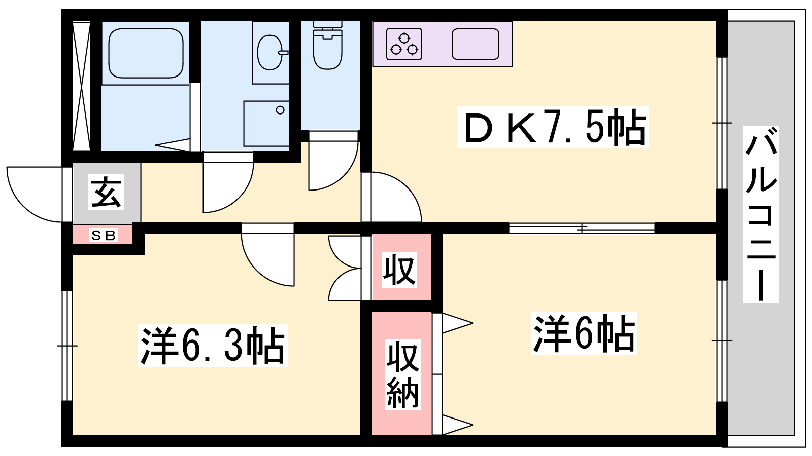 - DK7.5帖、洋室6帖、洋室6.3帖