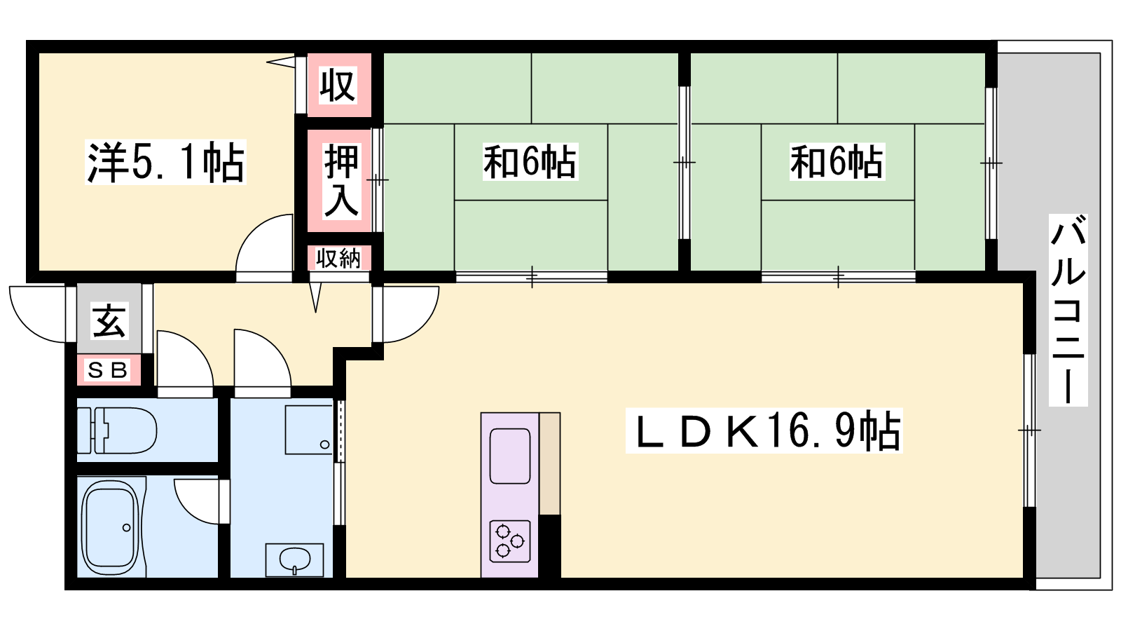- LDK16.9帖、和室6帖、和室6帖、洋室5.1帖