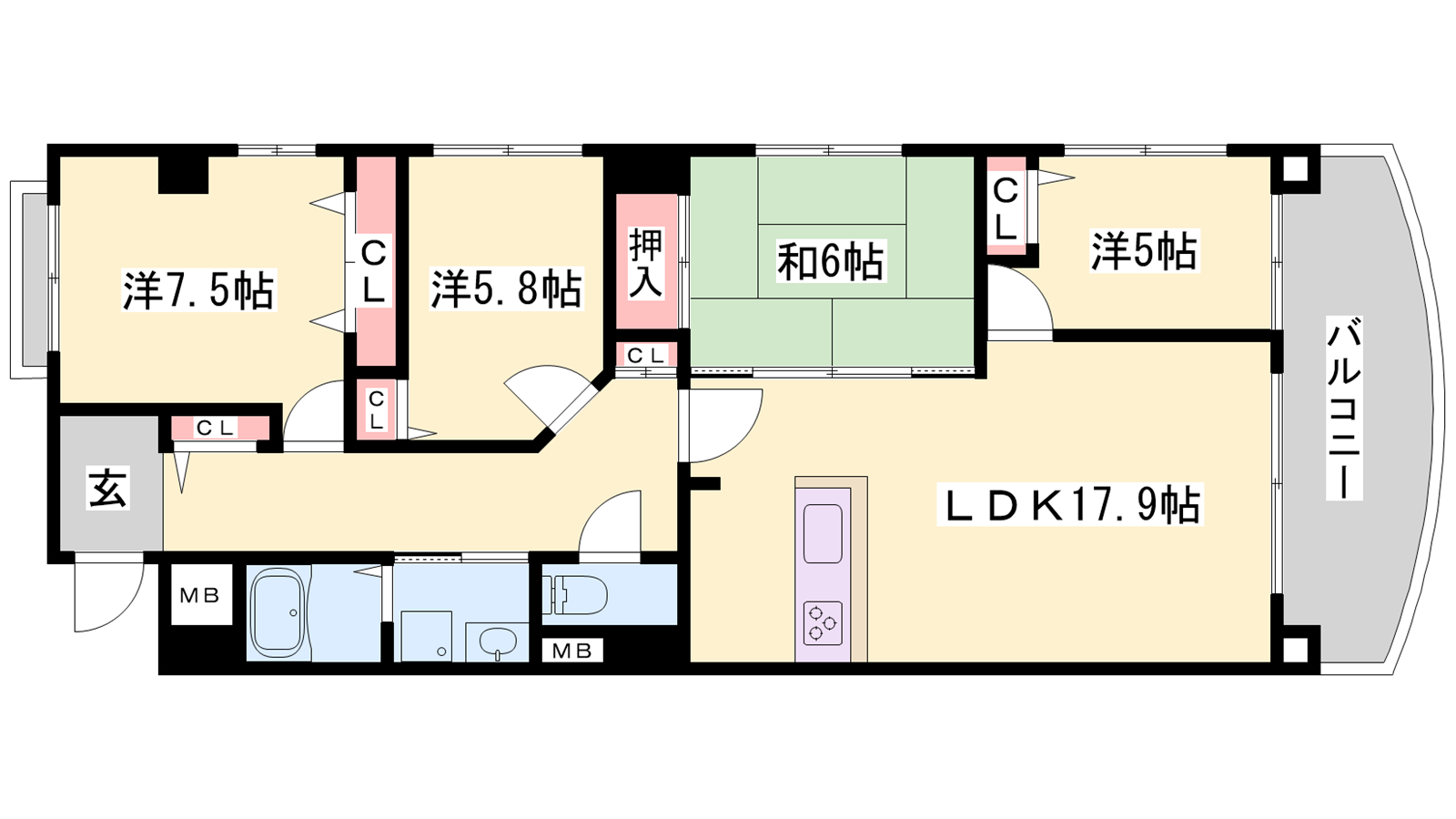 - LDK17.9帖、洋室5帖、和室6帖、洋室5.8帖、洋室7.5帖