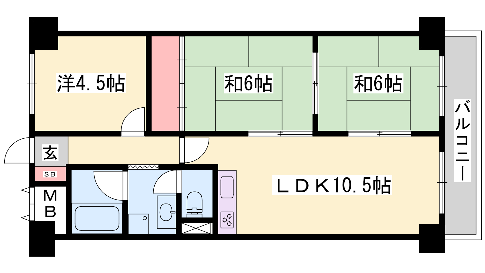 - LDK10.5帖、洋室4.5帖、和室6帖、和室6帖