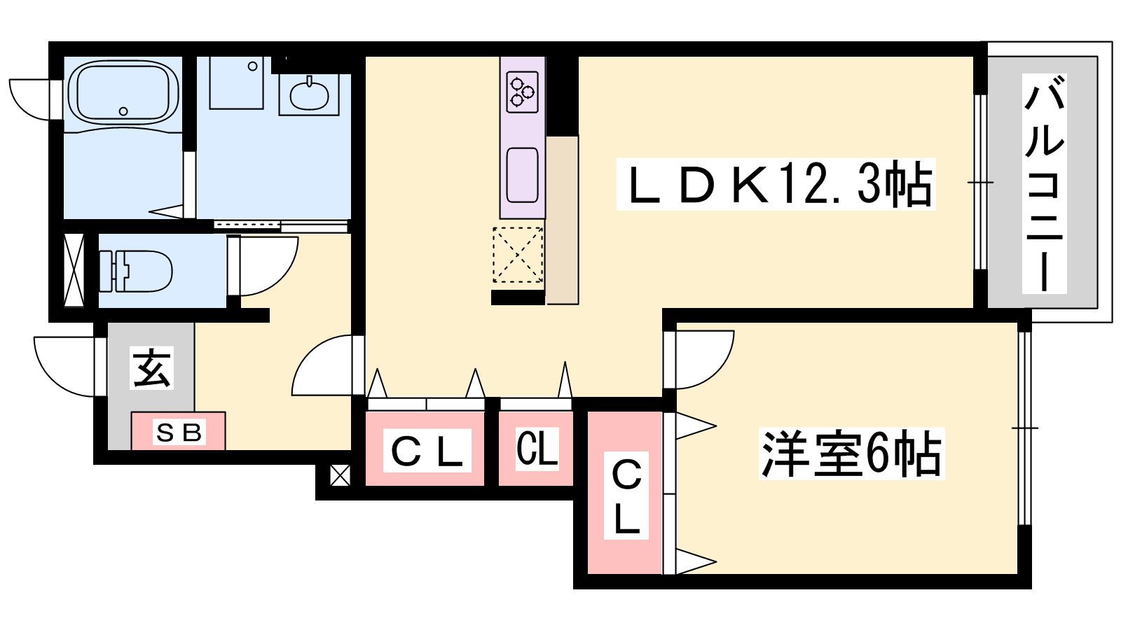 - LDK12.3帖、洋室6帖