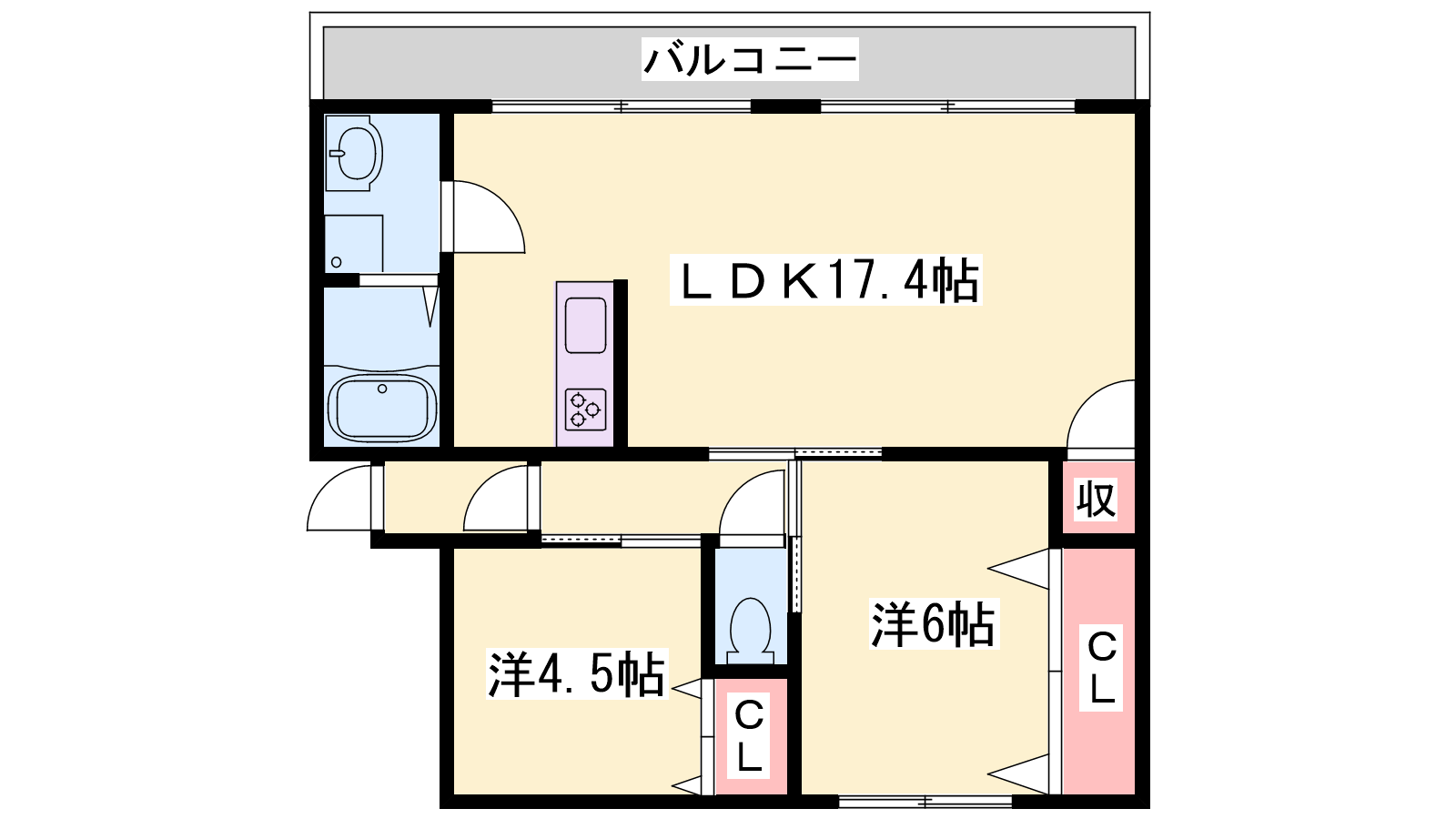 - LDK17.4帖、洋室6帖、洋室4.5帖