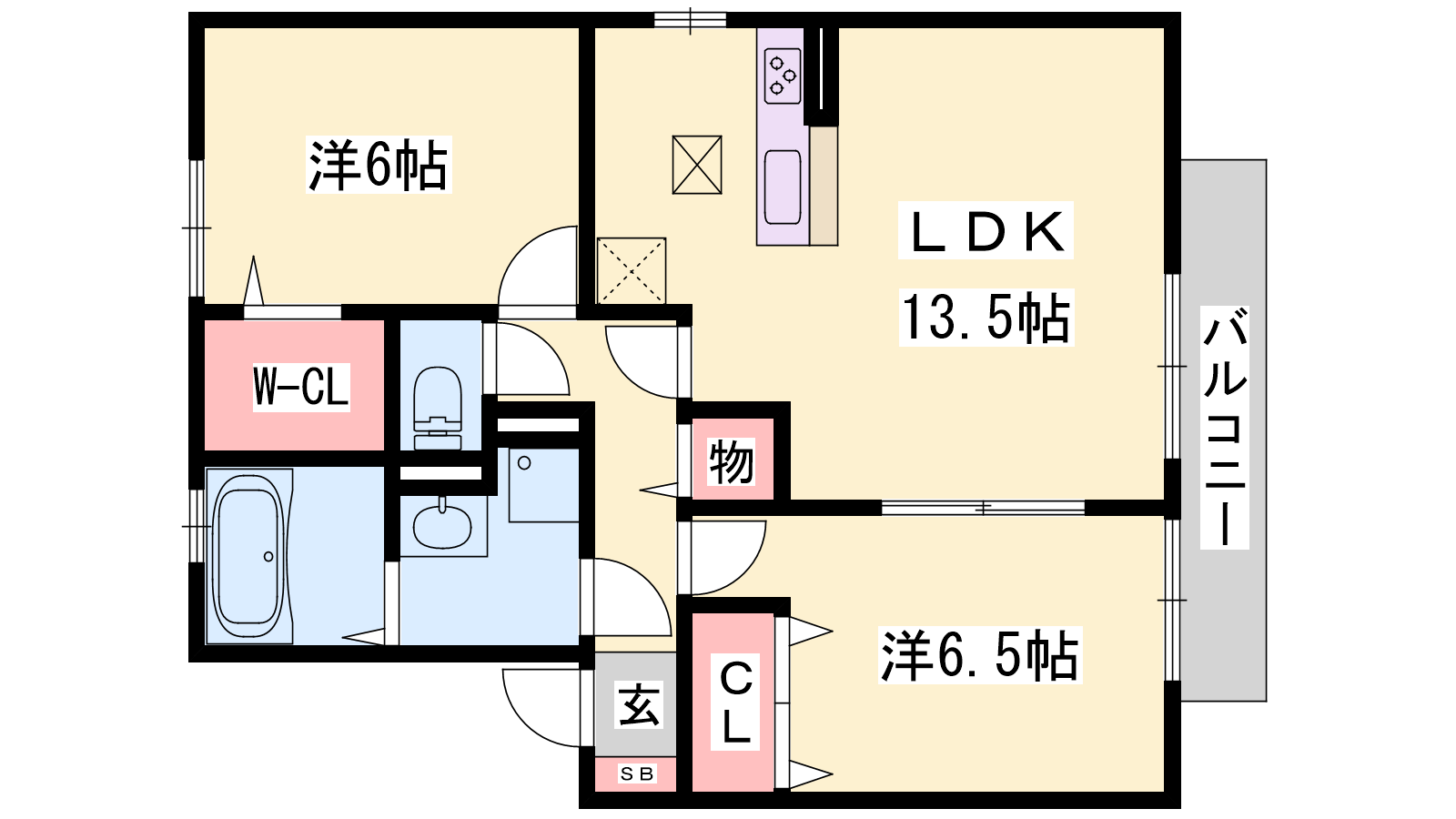- LDK13.5帖、洋室6帖、洋室6.5帖
