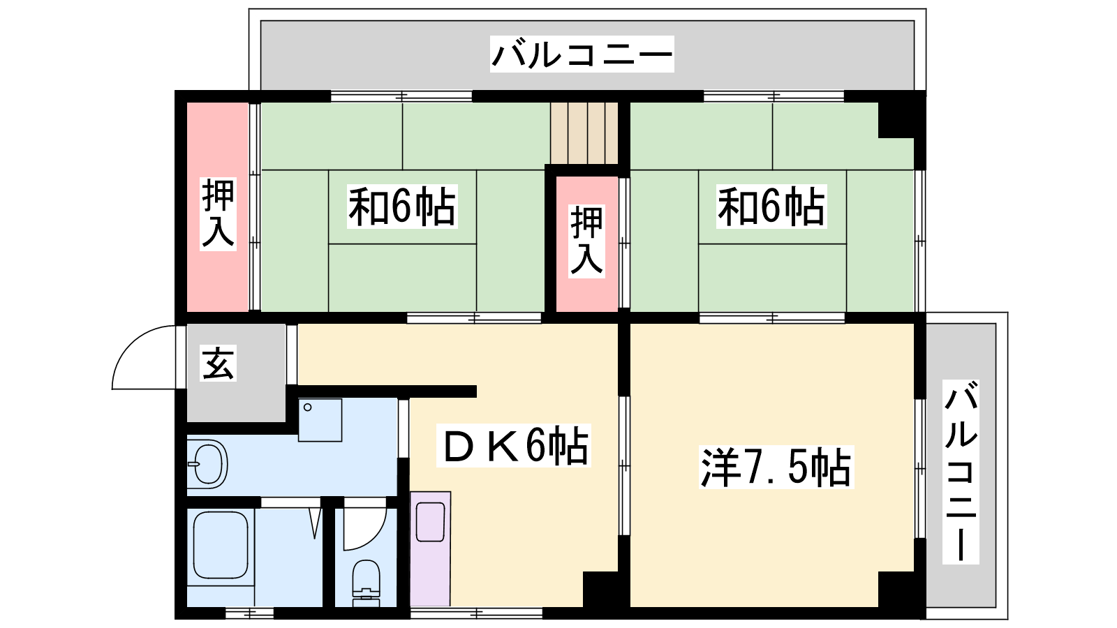 - DK6帖、洋室7.5帖、和室6帖、和室6帖