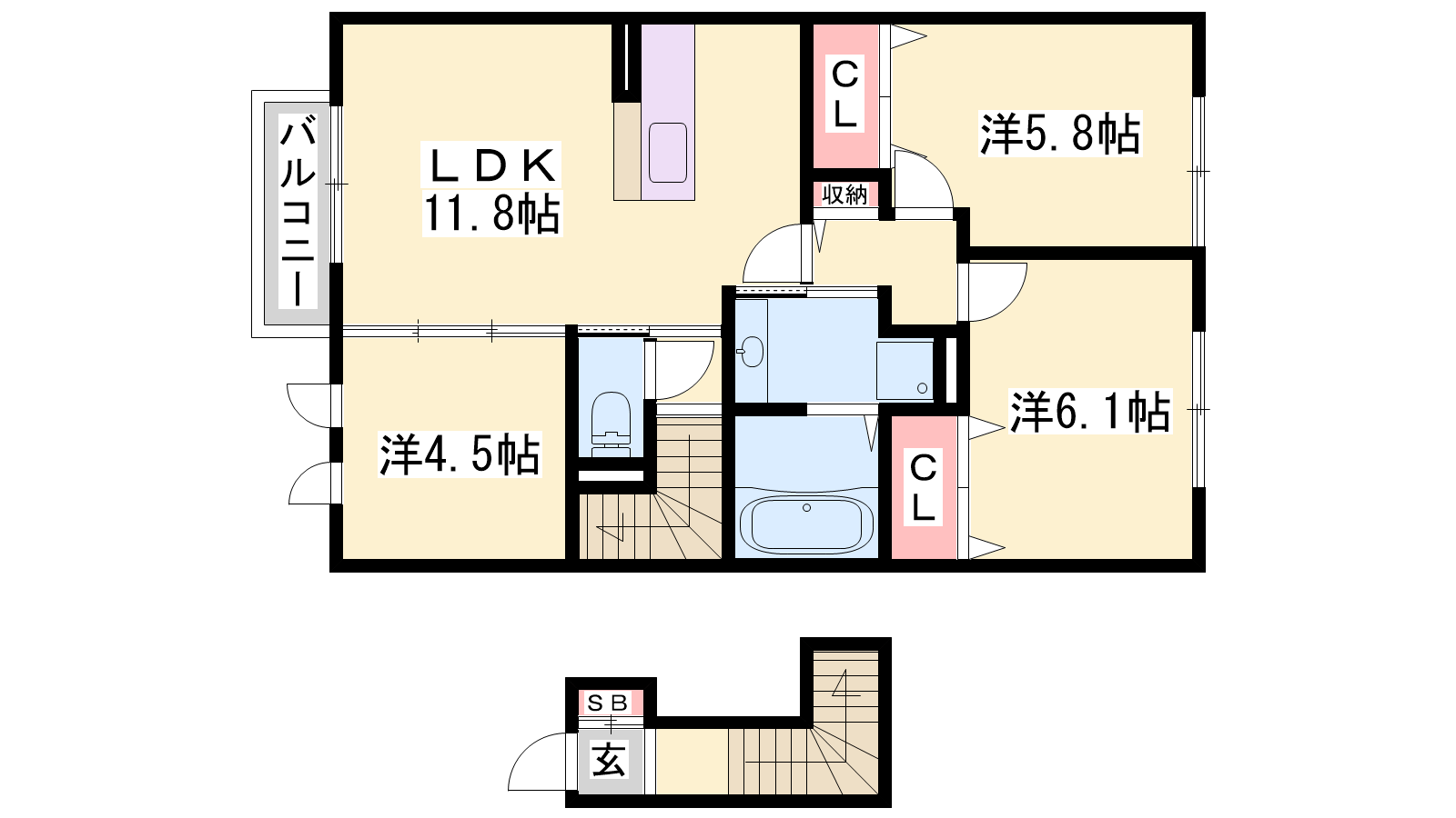 - LDK11.8帖、洋室6.1帖、洋室5.8帖、洋室4.5帖