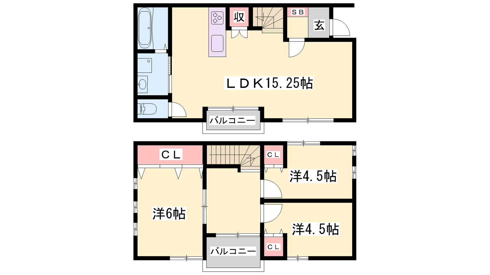 - LDK15.25帖、洋室6帖、洋室4.5帖、洋室4.5帖