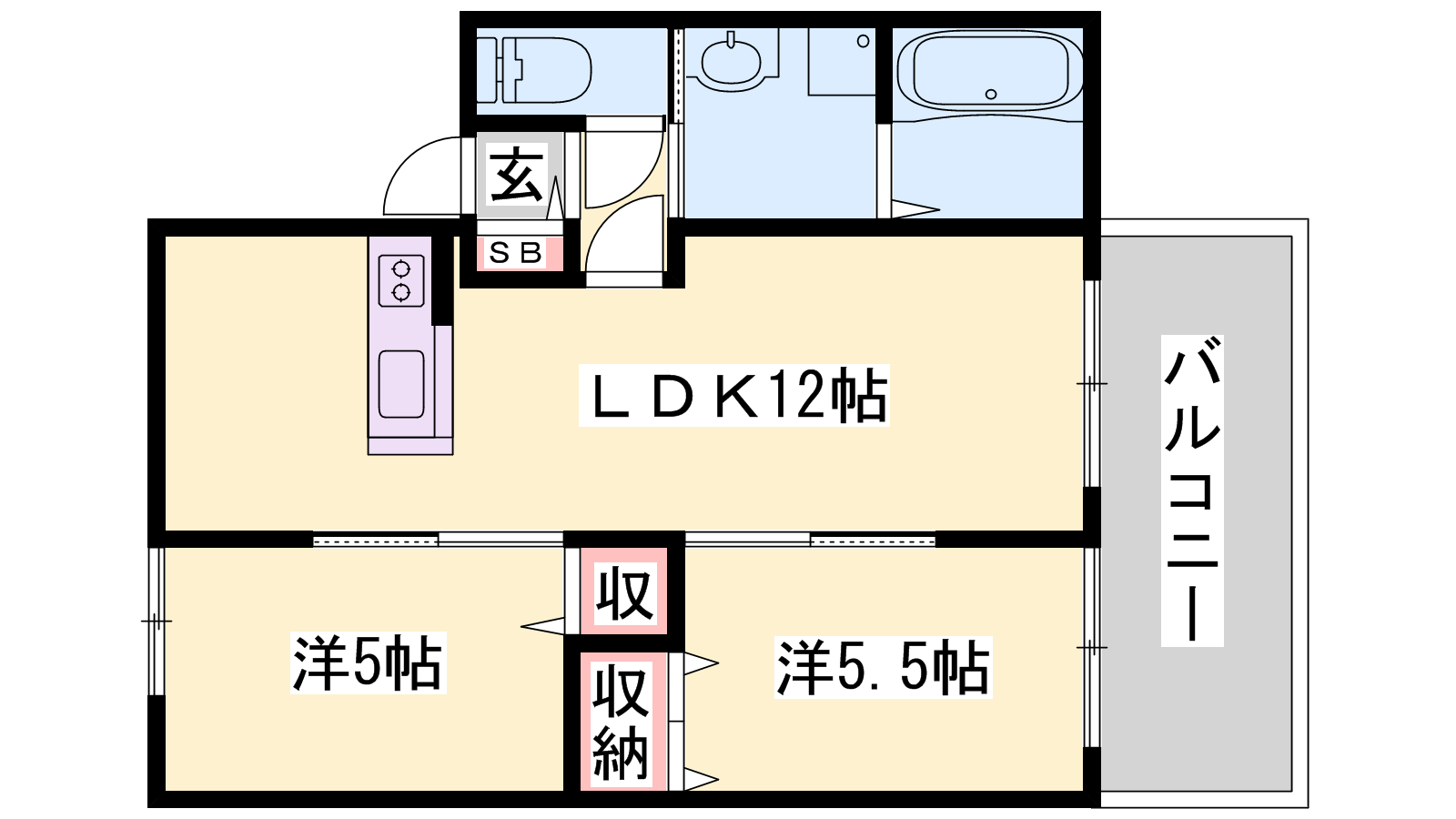 - LDK12帖、洋室5.5帖、洋室5帖