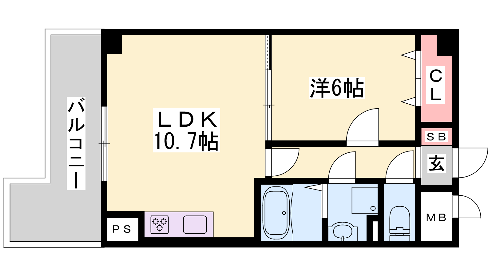 - LDK10.7帖、洋室6帖