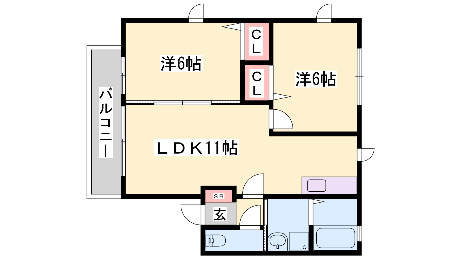 - LDK11帖、洋室6帖、洋室6帖
