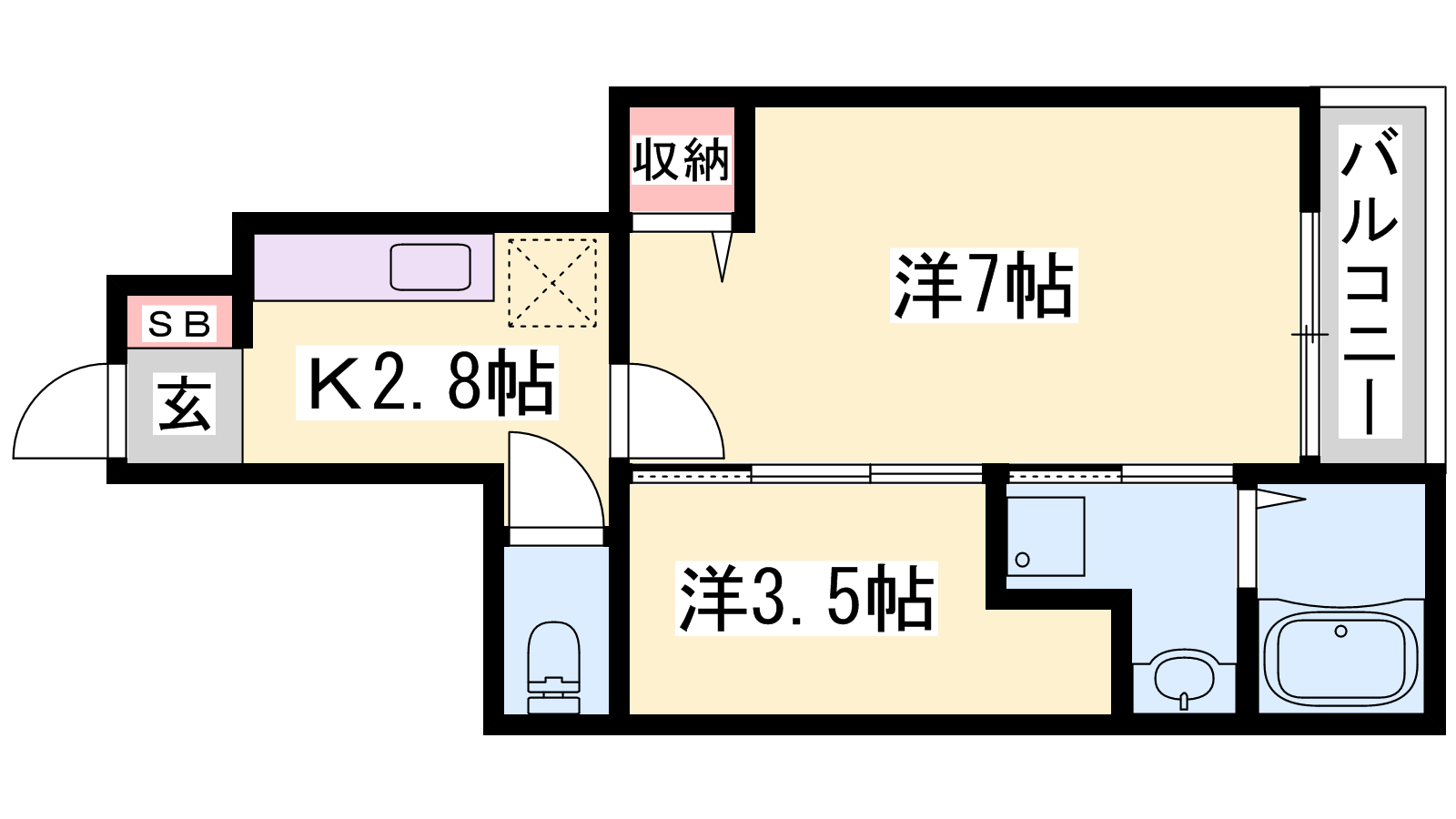 - K2.8帖、S3.5帖、洋室7帖