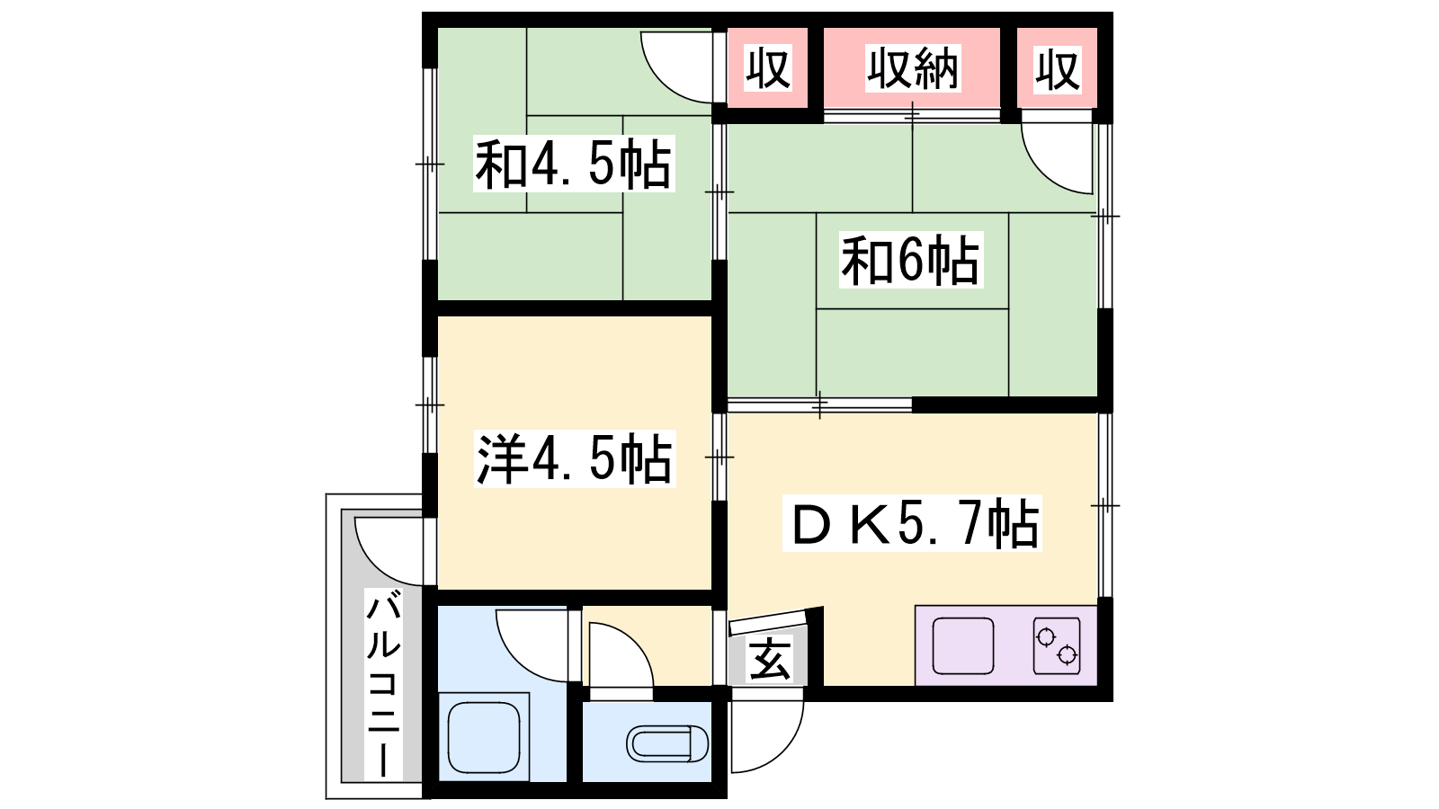 - K5.7帖、洋室4.5帖、和室6帖、和室4.5帖