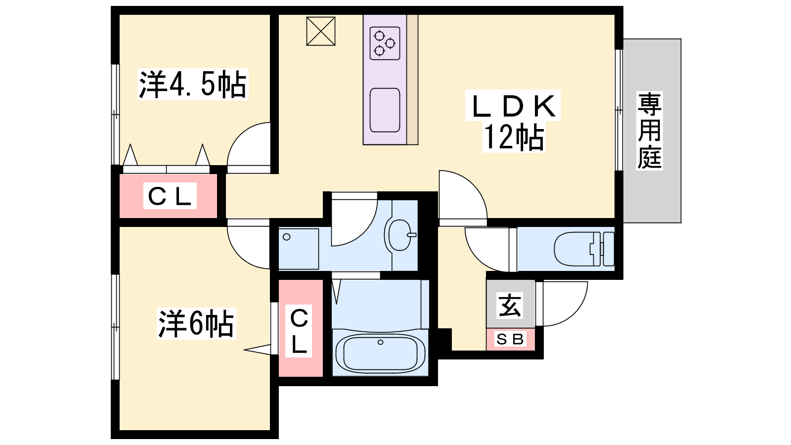 - LDK12帖、洋室6帖、洋室4.5帖