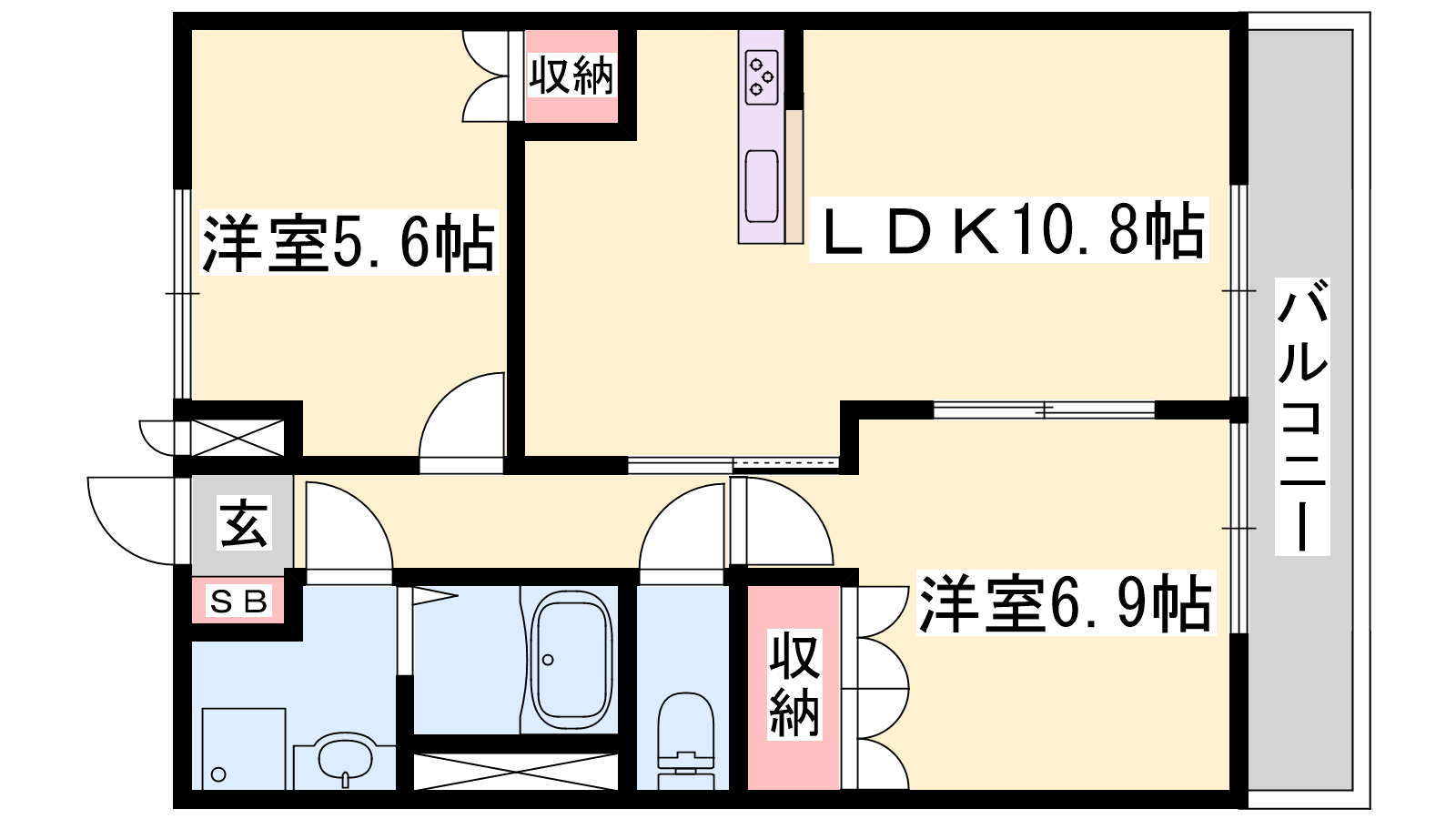 - LDK10.8帖、洋室6.9帖、洋室5.6帖
