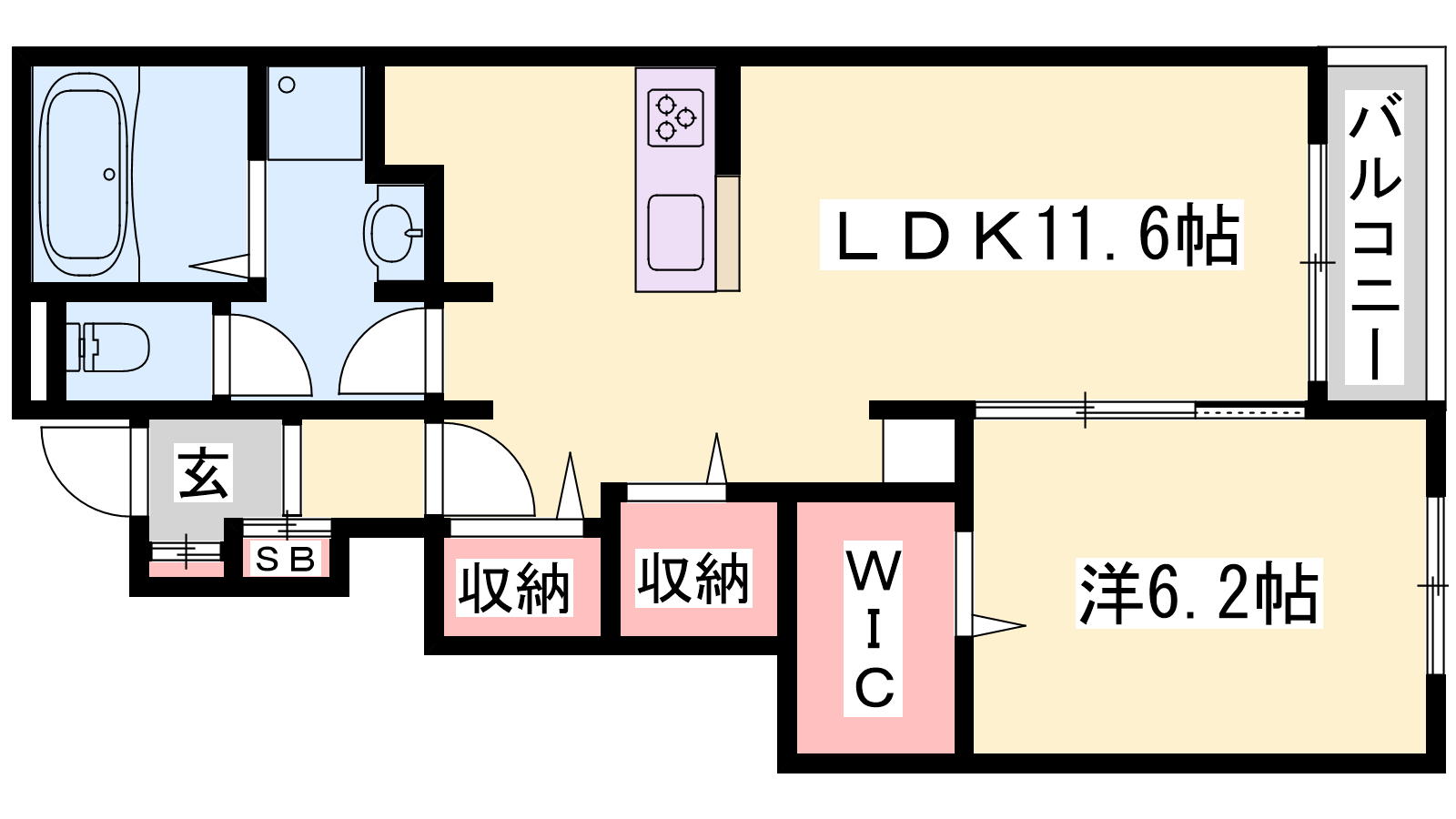 - LDK11.6帖、洋室6.2帖