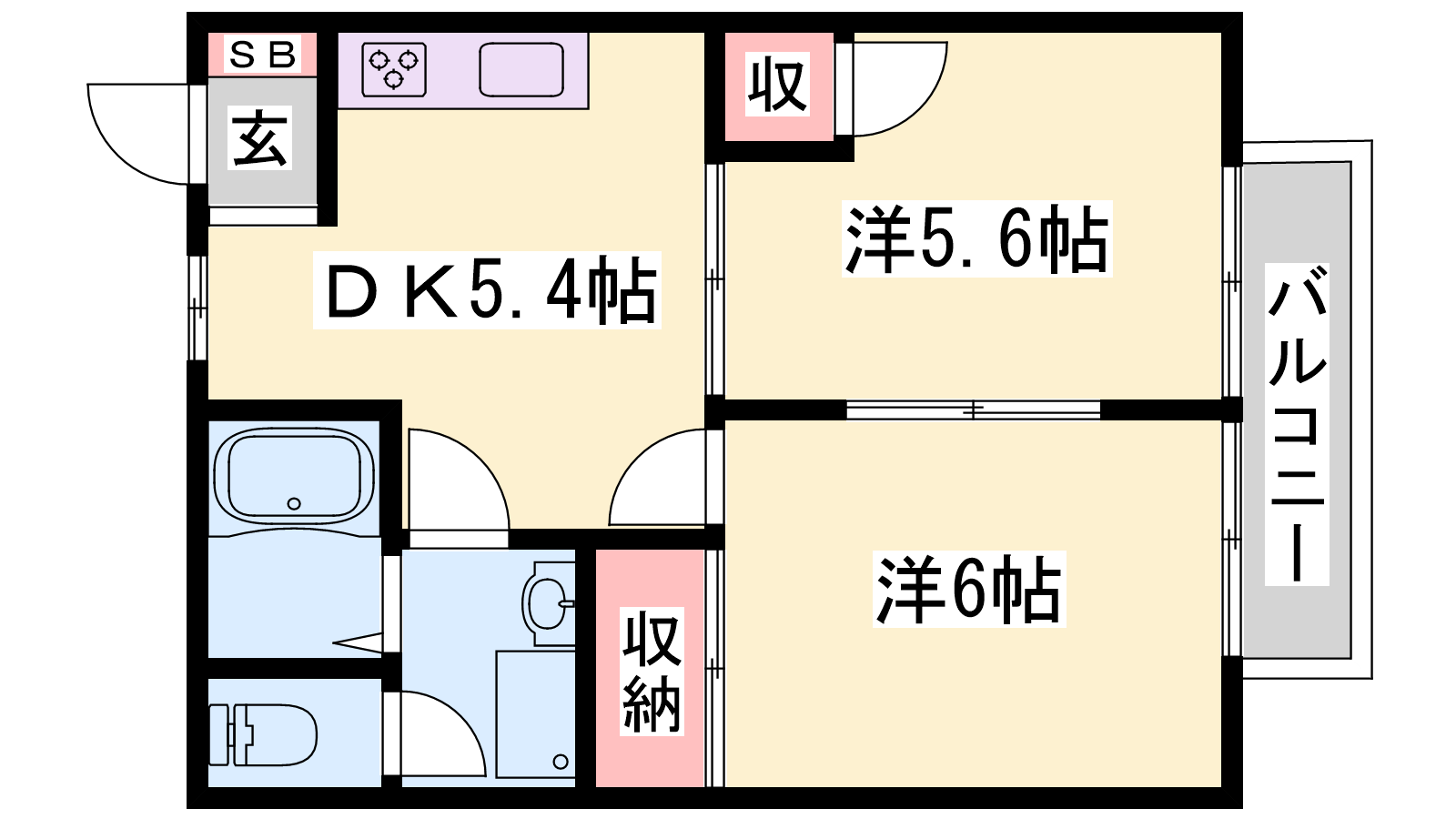 - DK5.4帖、洋室6帖、洋室5.6帖