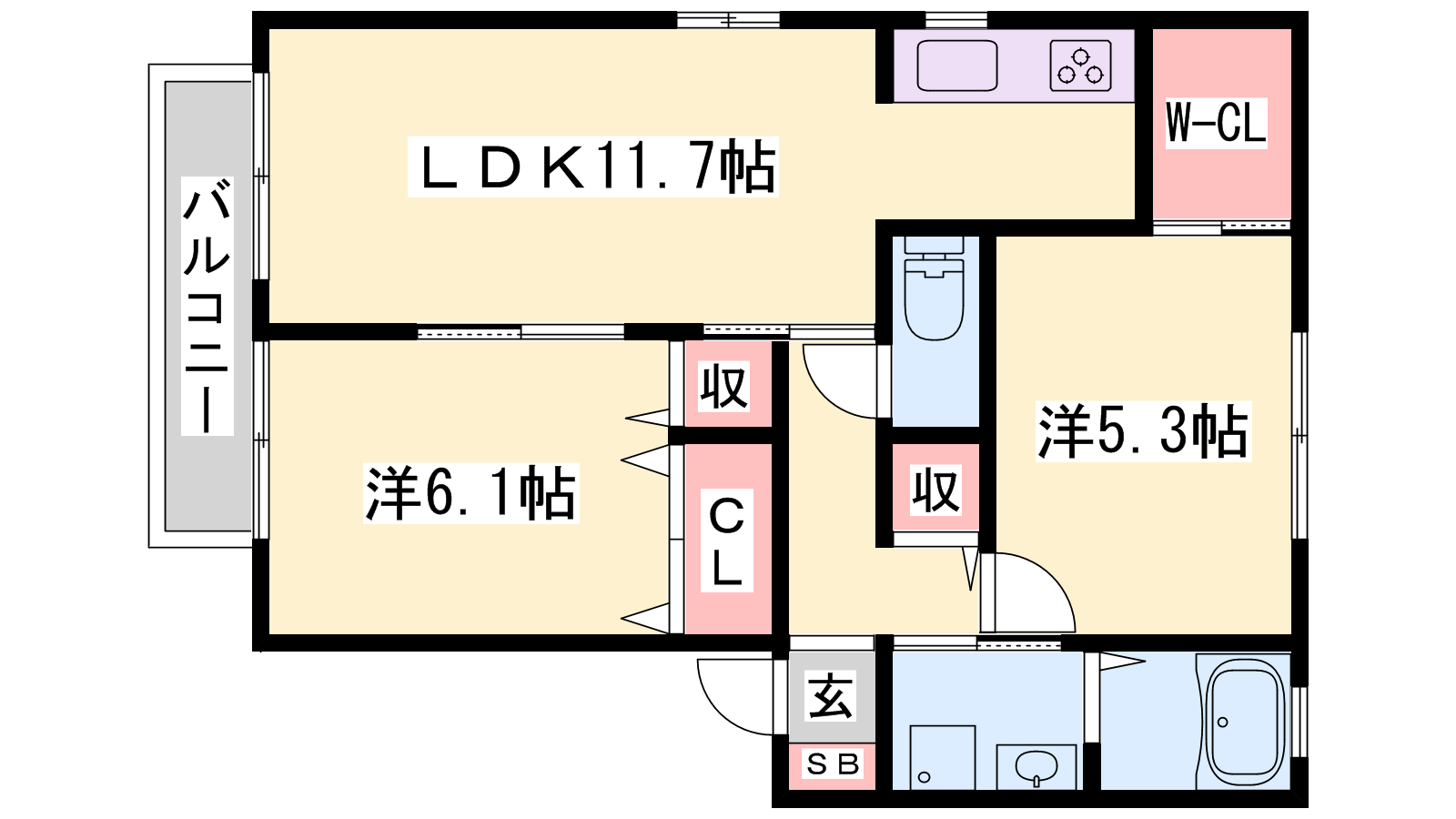 - LDK11.7帖、洋室6.1帖、洋室5.3帖