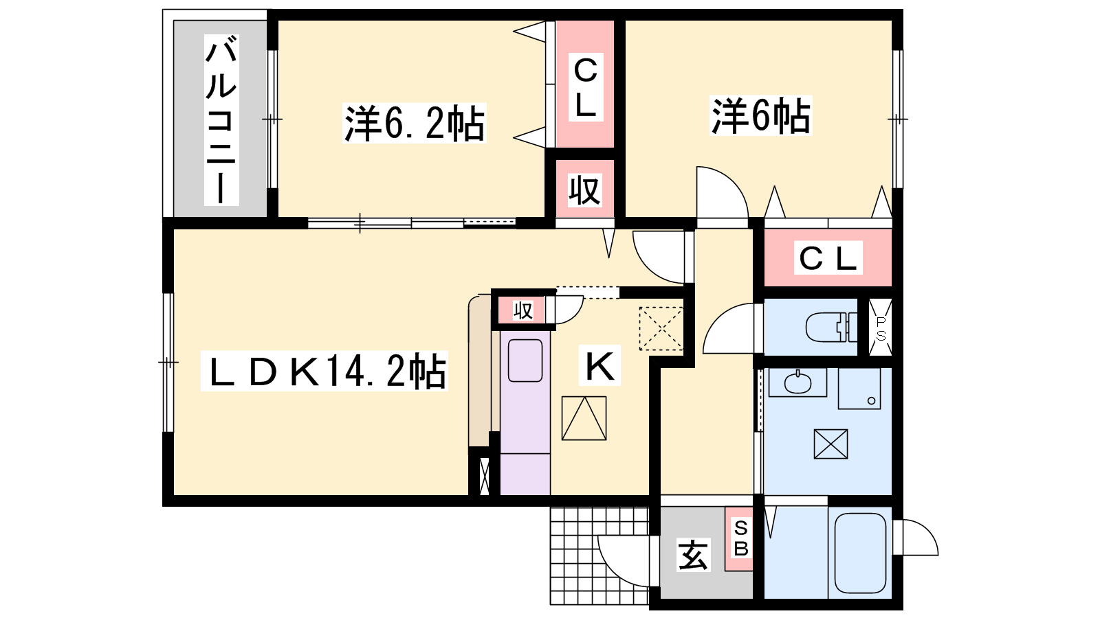 - LDK14.2帖、洋室6.2帖、洋室6帖