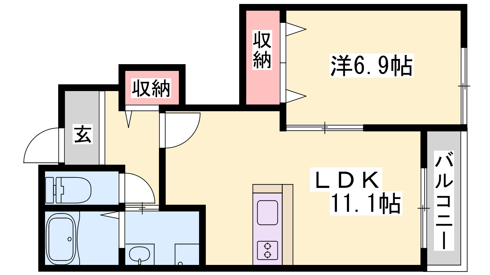 - LDK11.1帖、洋室6.9帖
