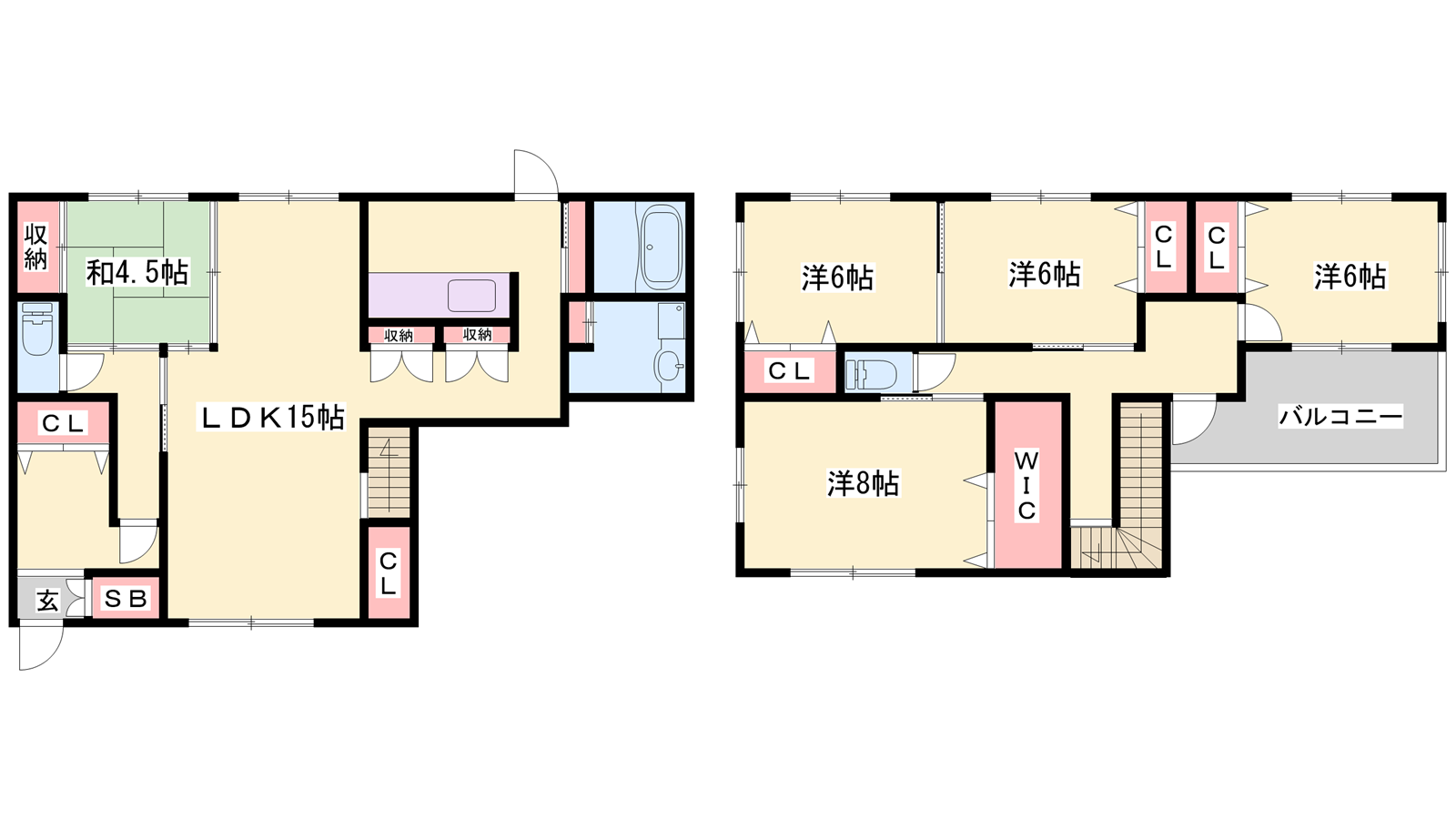 - LDK15帖、洋室12帖、洋室8帖、和室4.5帖