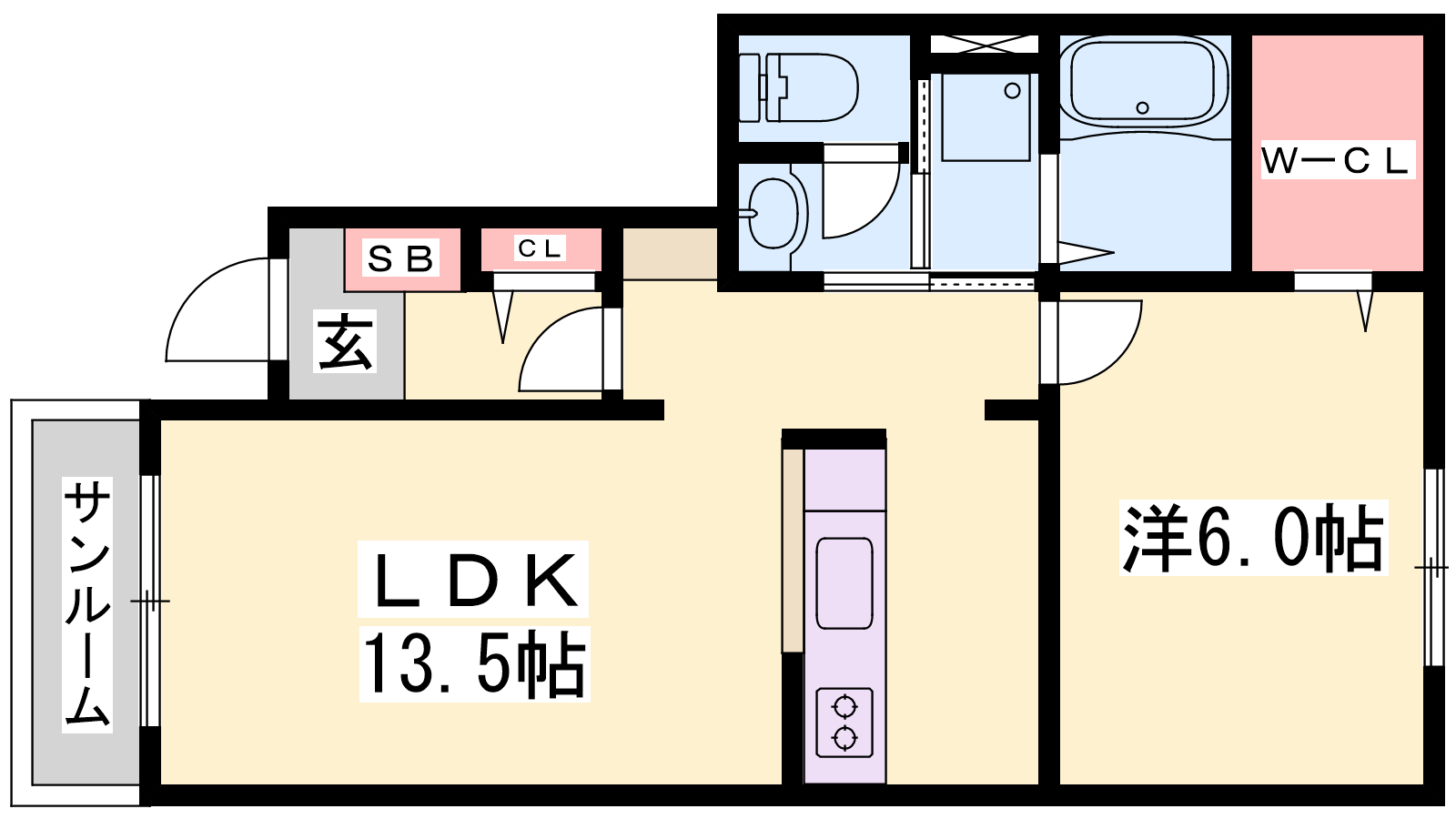 - LDK13.5帖、洋室6帖