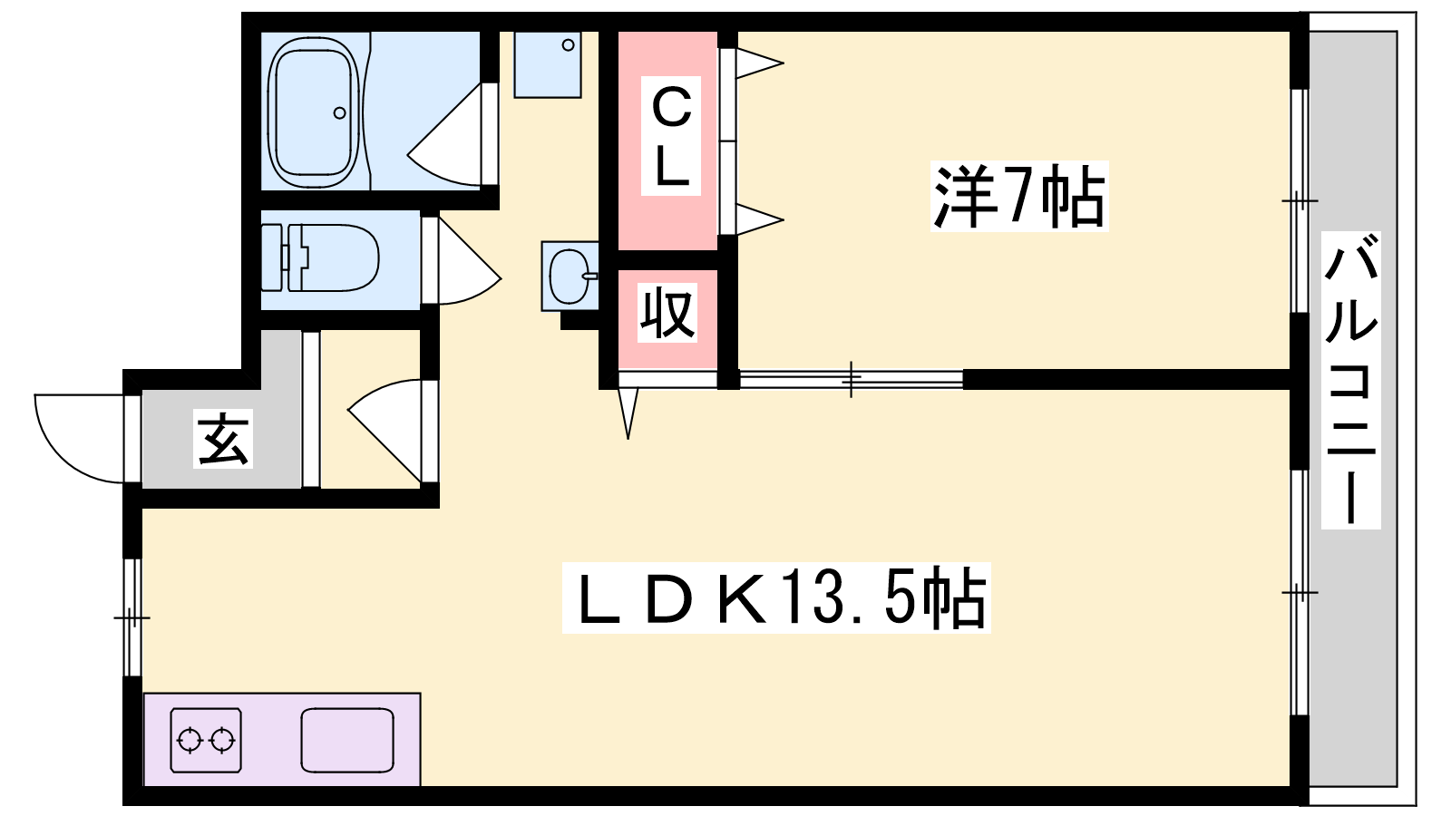 - LDK13.5帖、洋室7帖