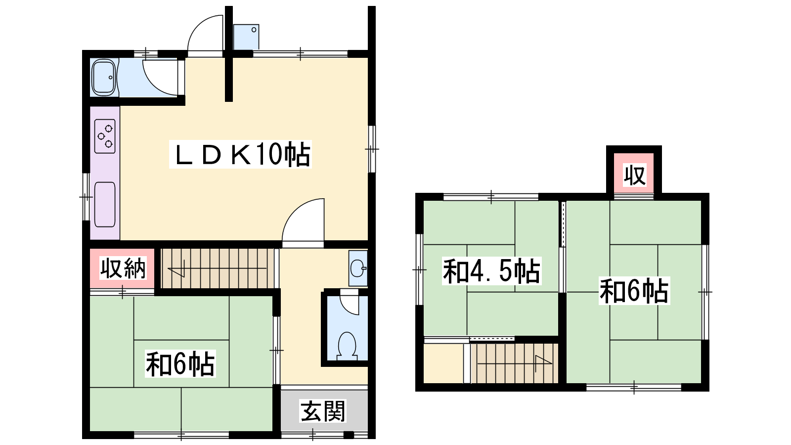 - LDK10帖、和室6帖、和室6帖、和室4.5帖