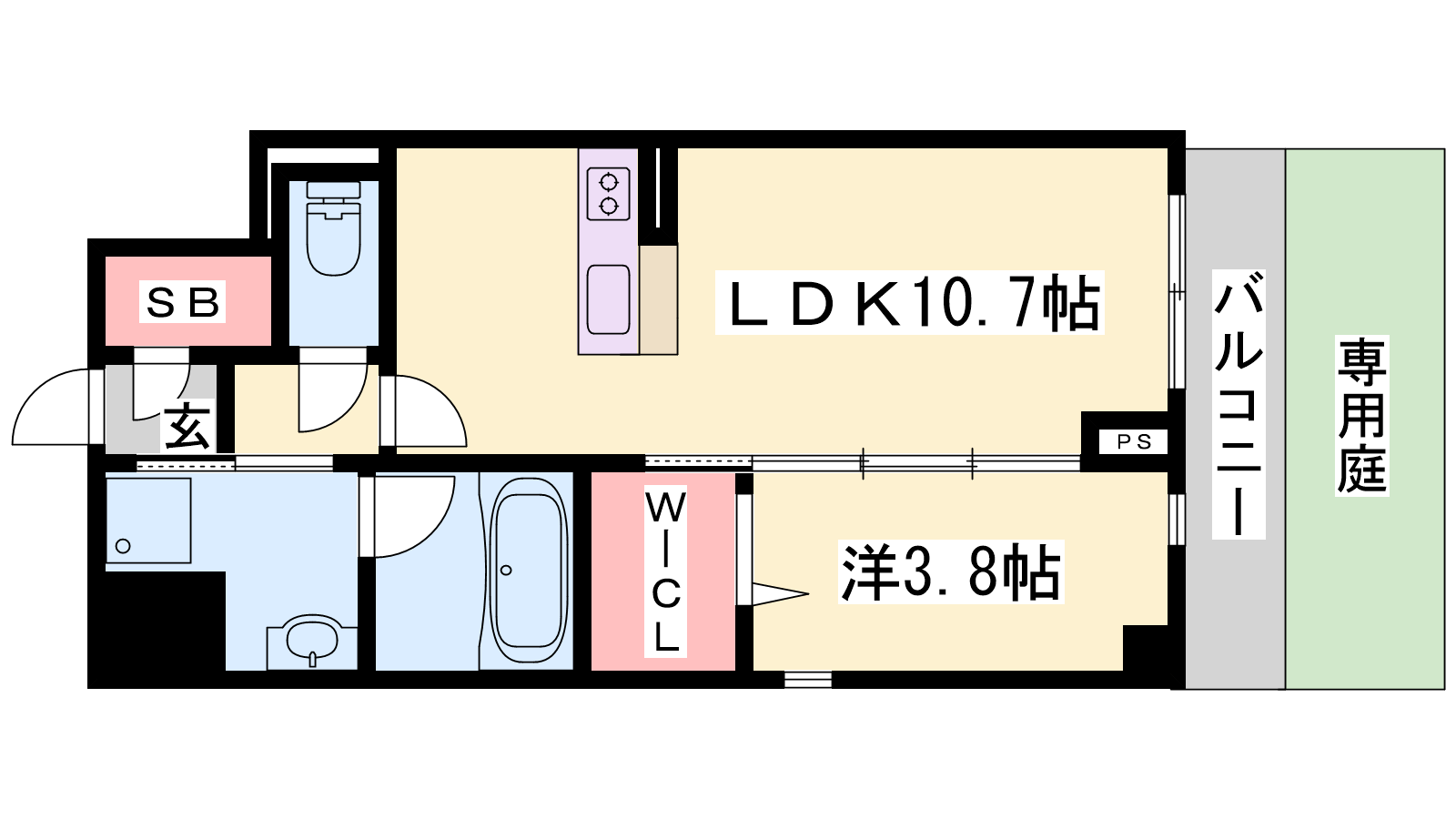 - LDK10.7帖、洋室3.8帖