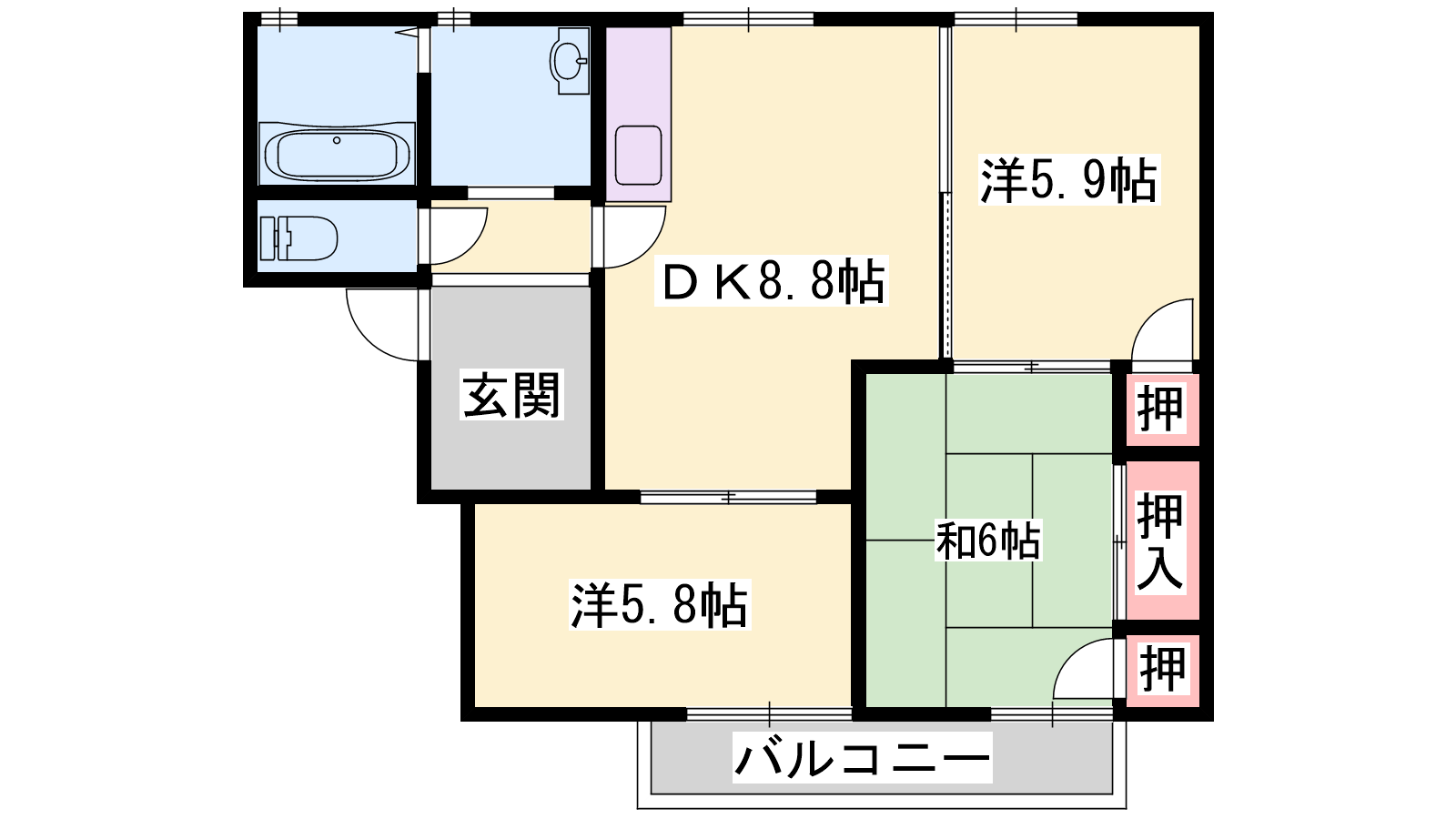 - DK8.8帖、洋室5.9帖、洋室5.8帖、和室5.9帖
