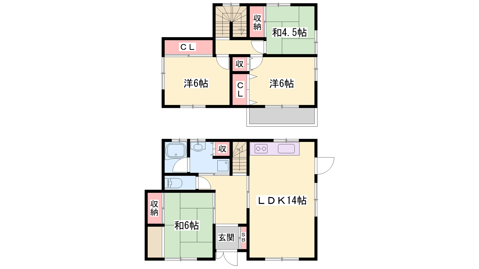 - LDK14帖、洋室6帖、洋室6帖、和室6帖、和室4.5帖