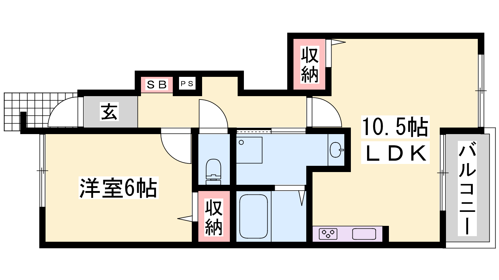- LDK10.5帖、洋室6帖