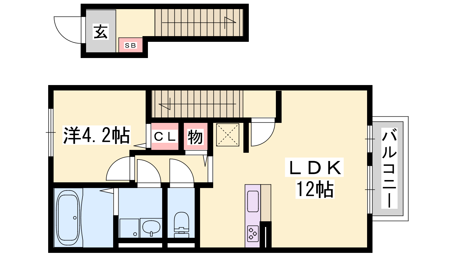 - LDK12帖、洋室4.2帖