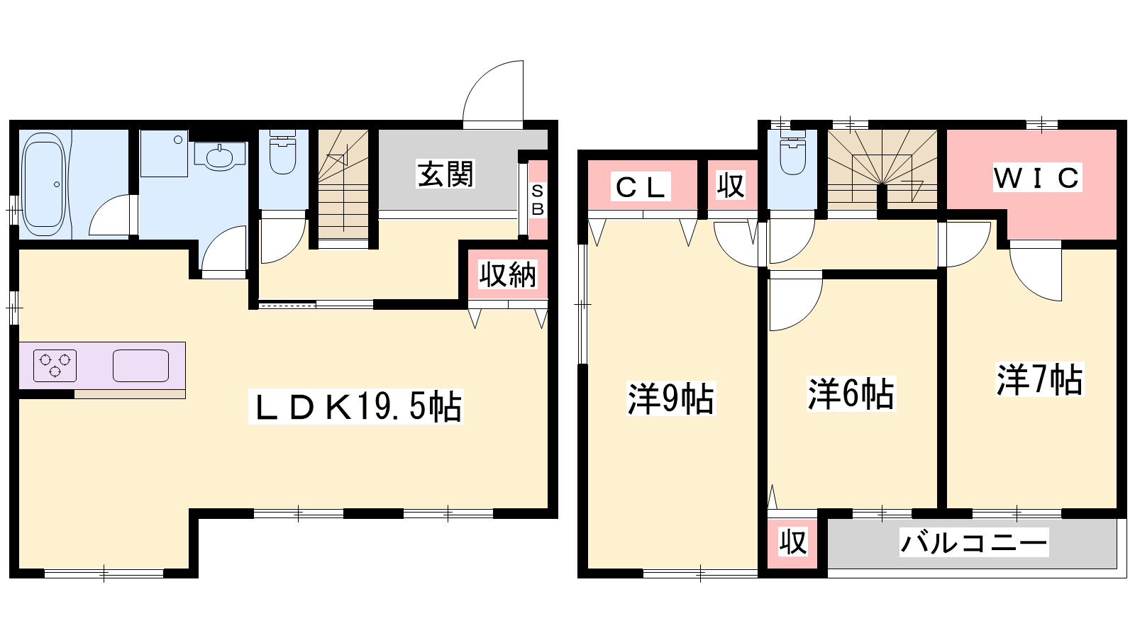 - LDK19.5帖、洋室9帖、洋室7帖、洋室6帖