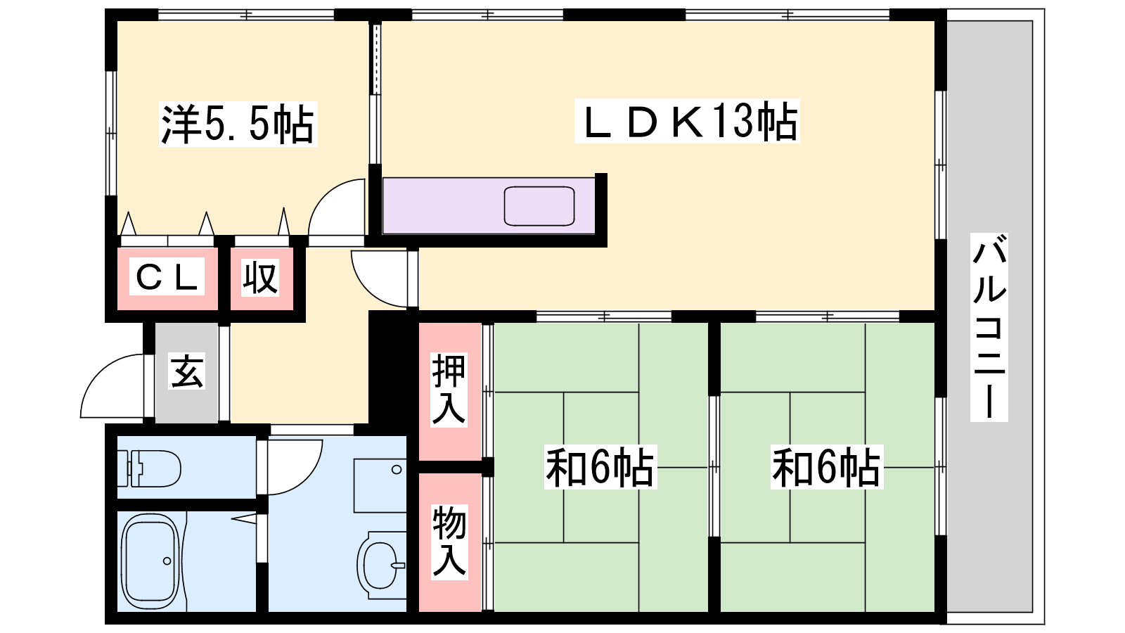 - LDK13帖、洋室5.5帖、和室6帖、和室6帖