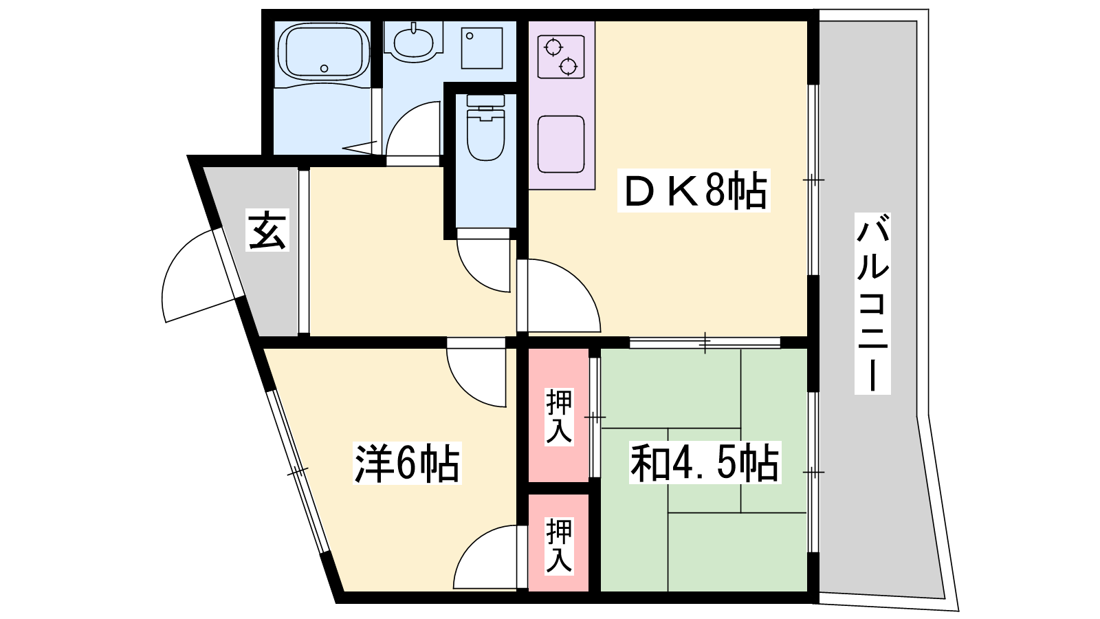 - DK8帖、洋室6帖、和室4.5帖