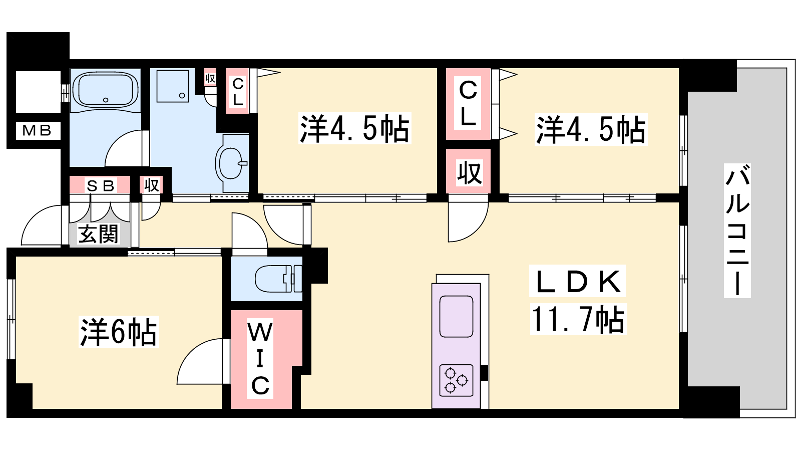 - LDK11.7帖、洋室6帖、洋室4.5帖、洋室4.5帖