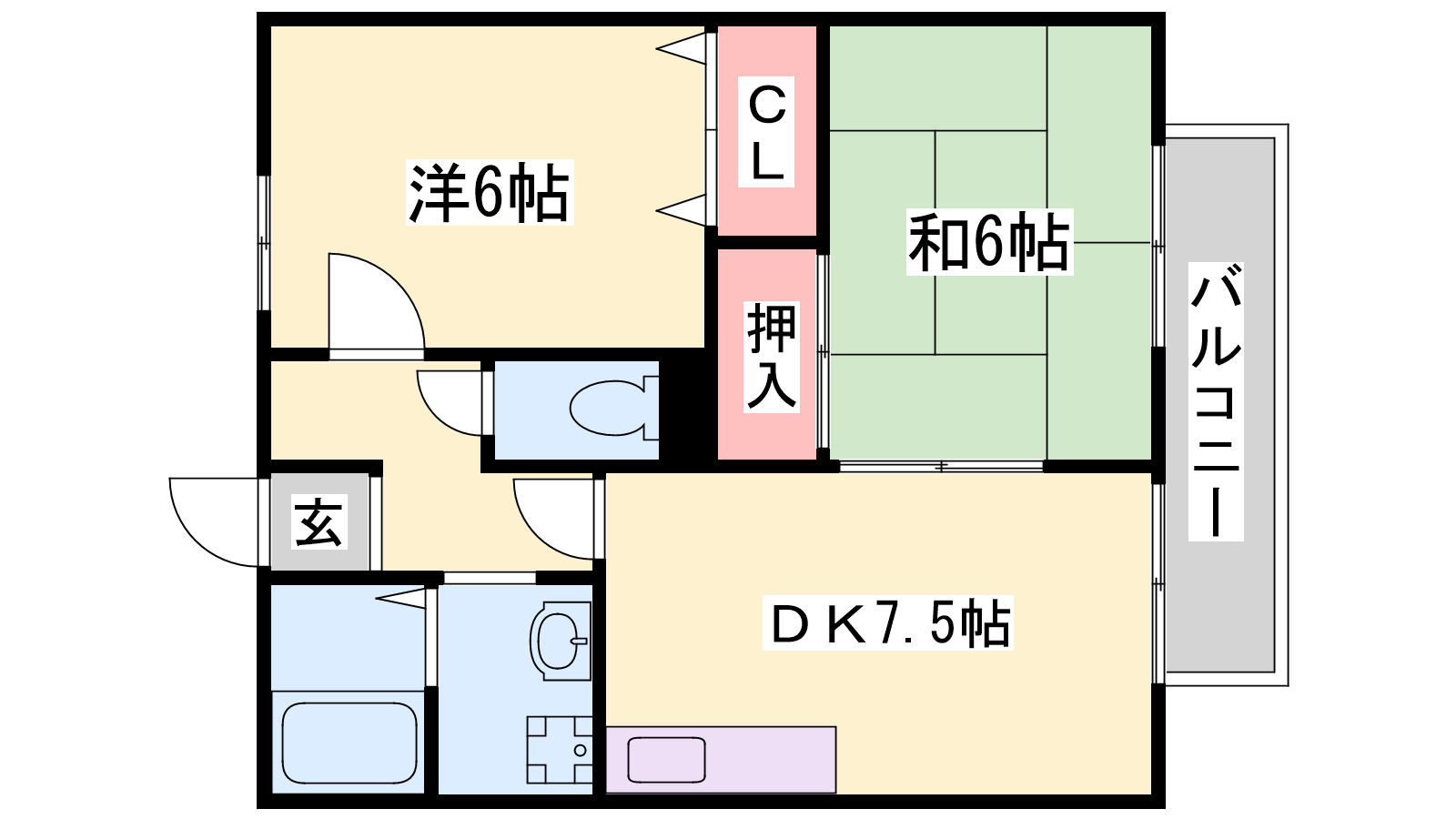 - DK7.5帖、洋室6帖、和室6帖