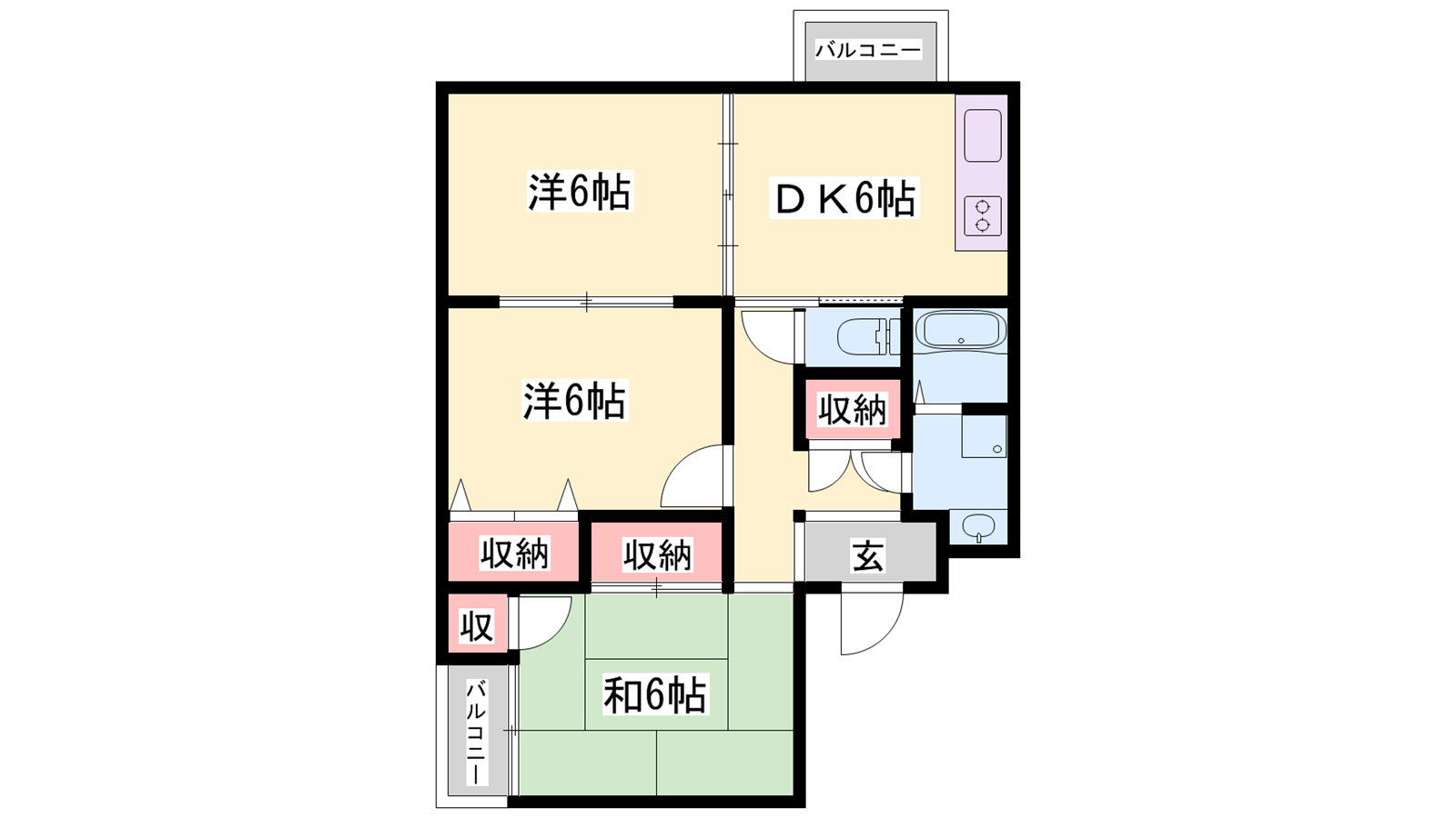 - DK6帖、洋室6帖、洋室6帖、和室6帖