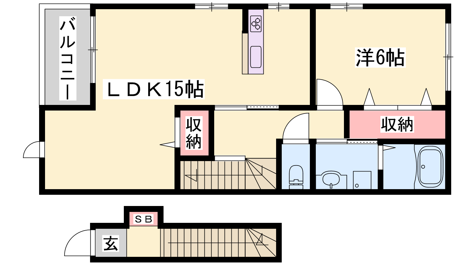 - LDK15帖、洋室6帖