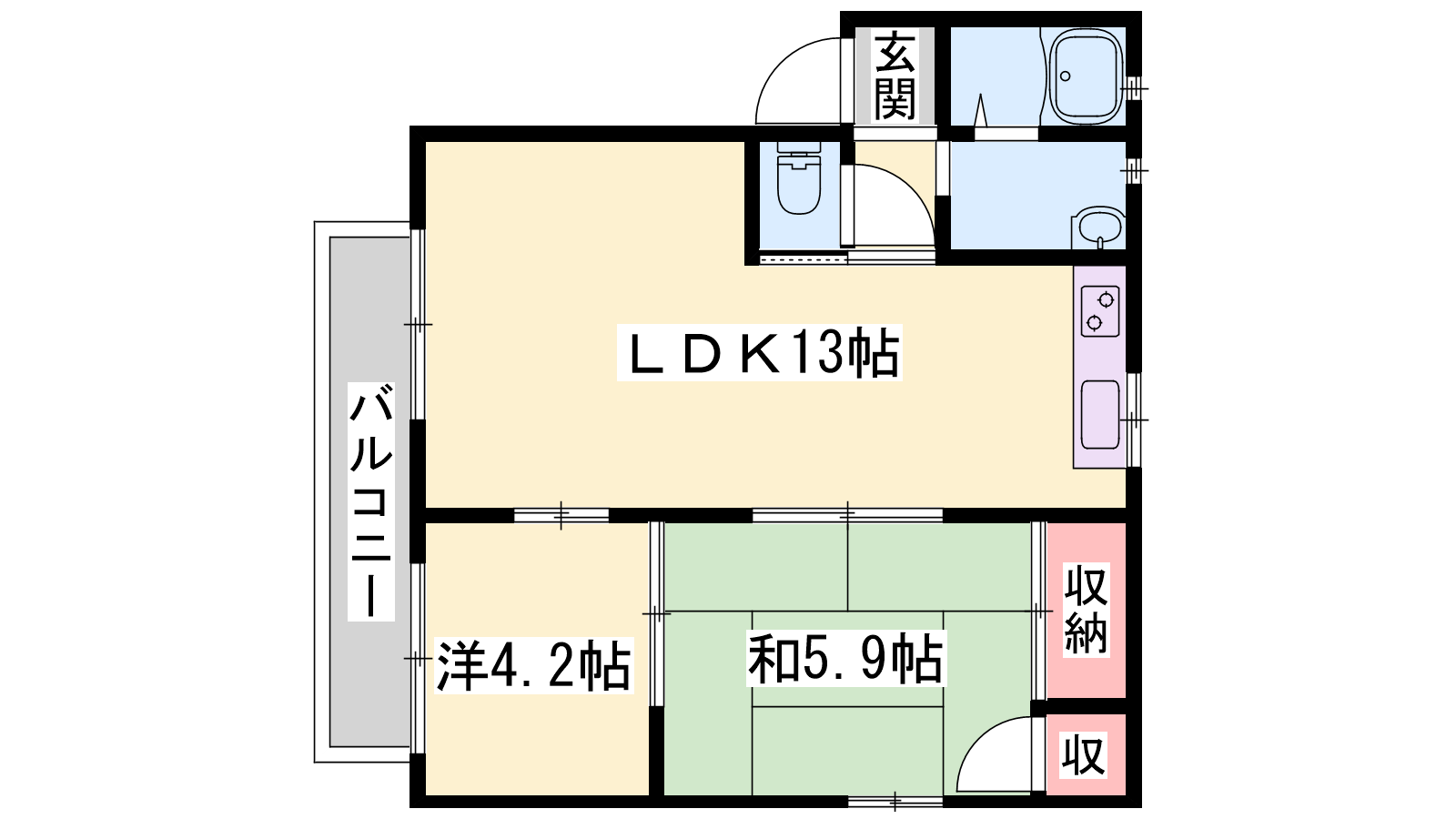 - LDK13帖、洋室4.2帖、和室5.9帖
