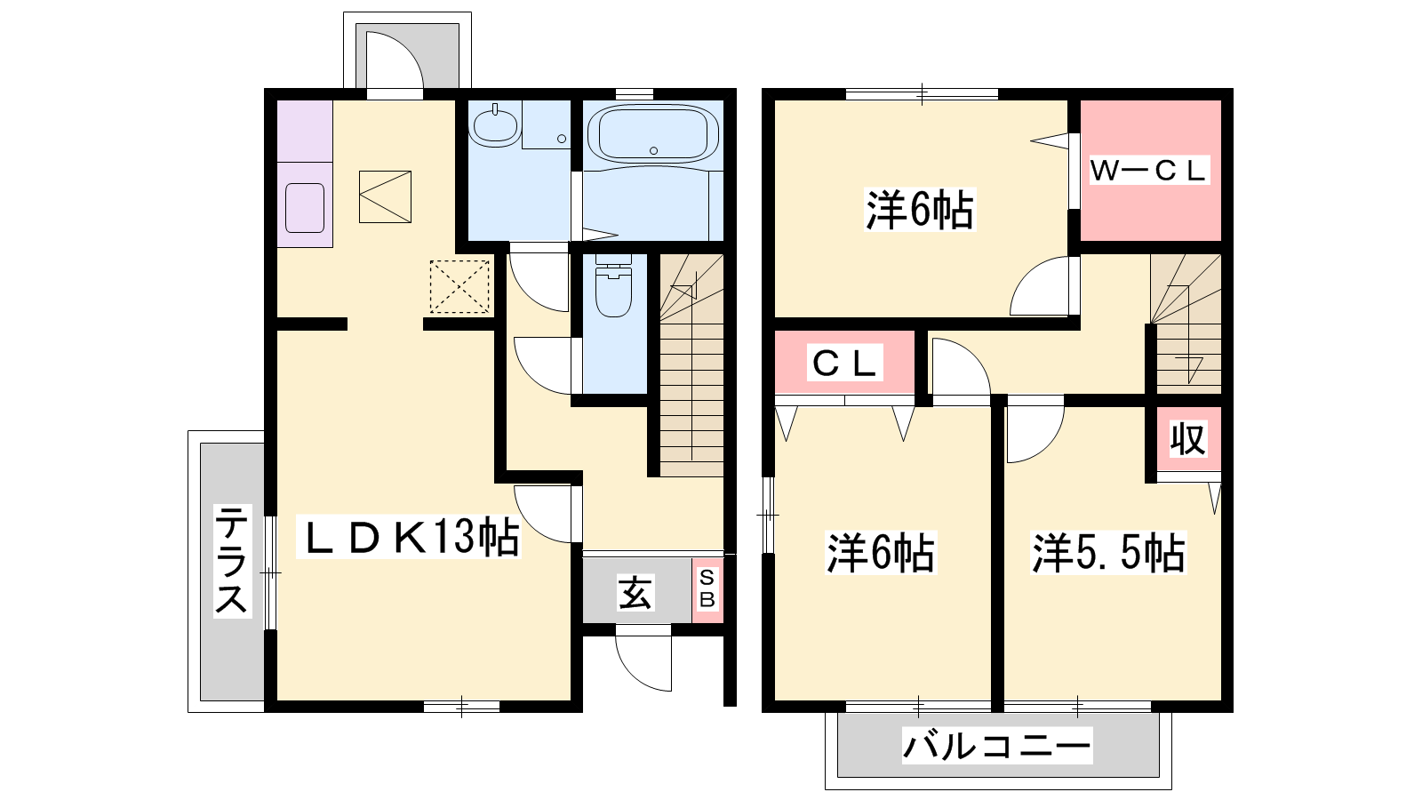 - LDK13帖、洋室6帖、洋室6帖、洋室5.5帖
