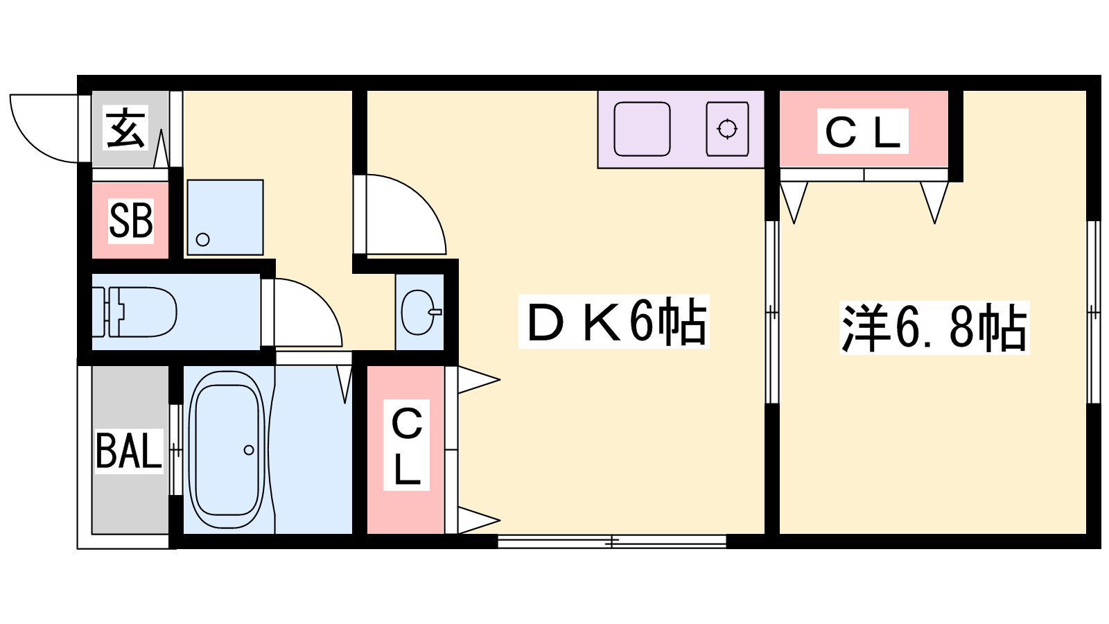 - DK6帖、洋室6.8帖