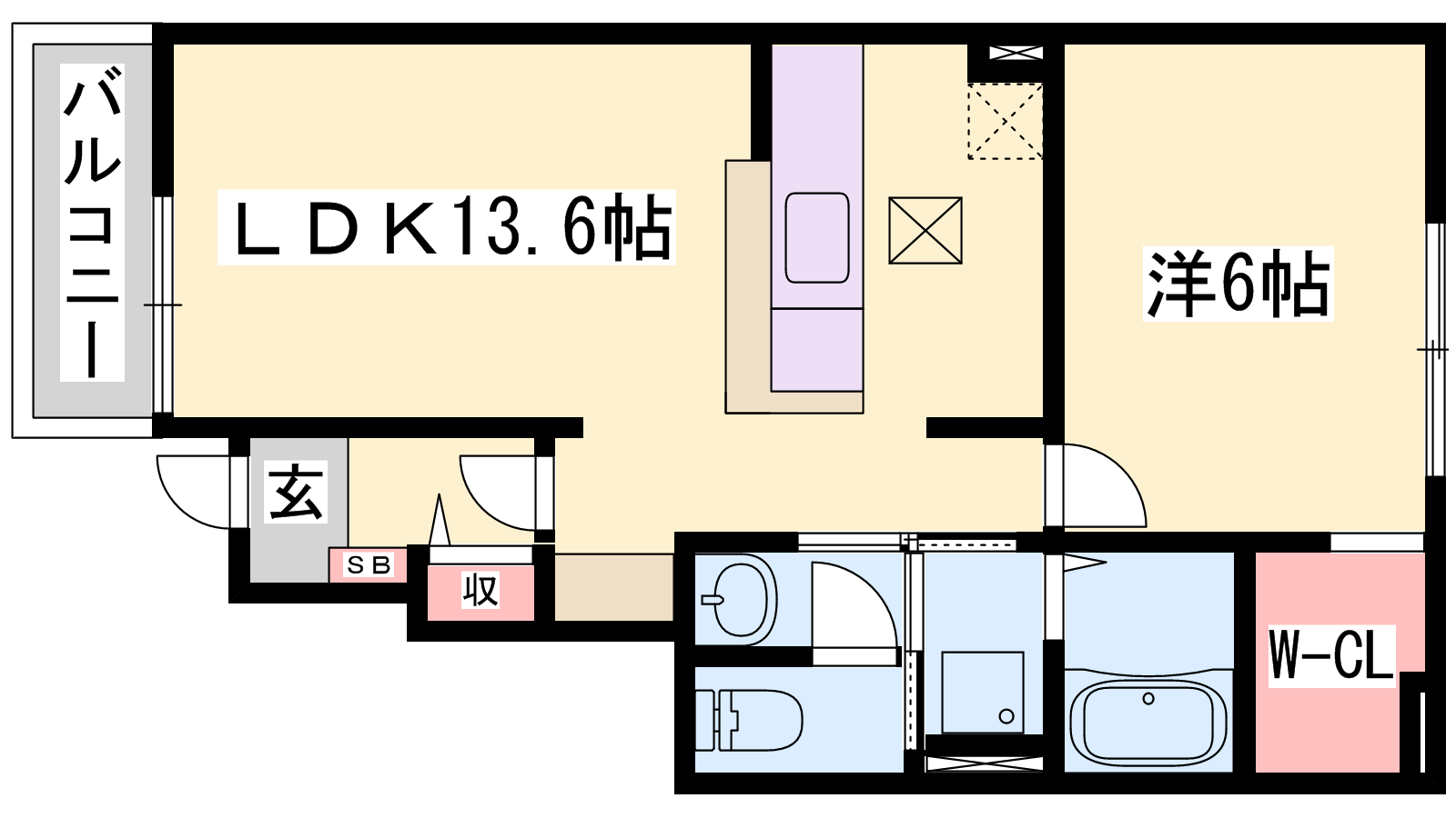 - LDK13.6帖、洋室6帖