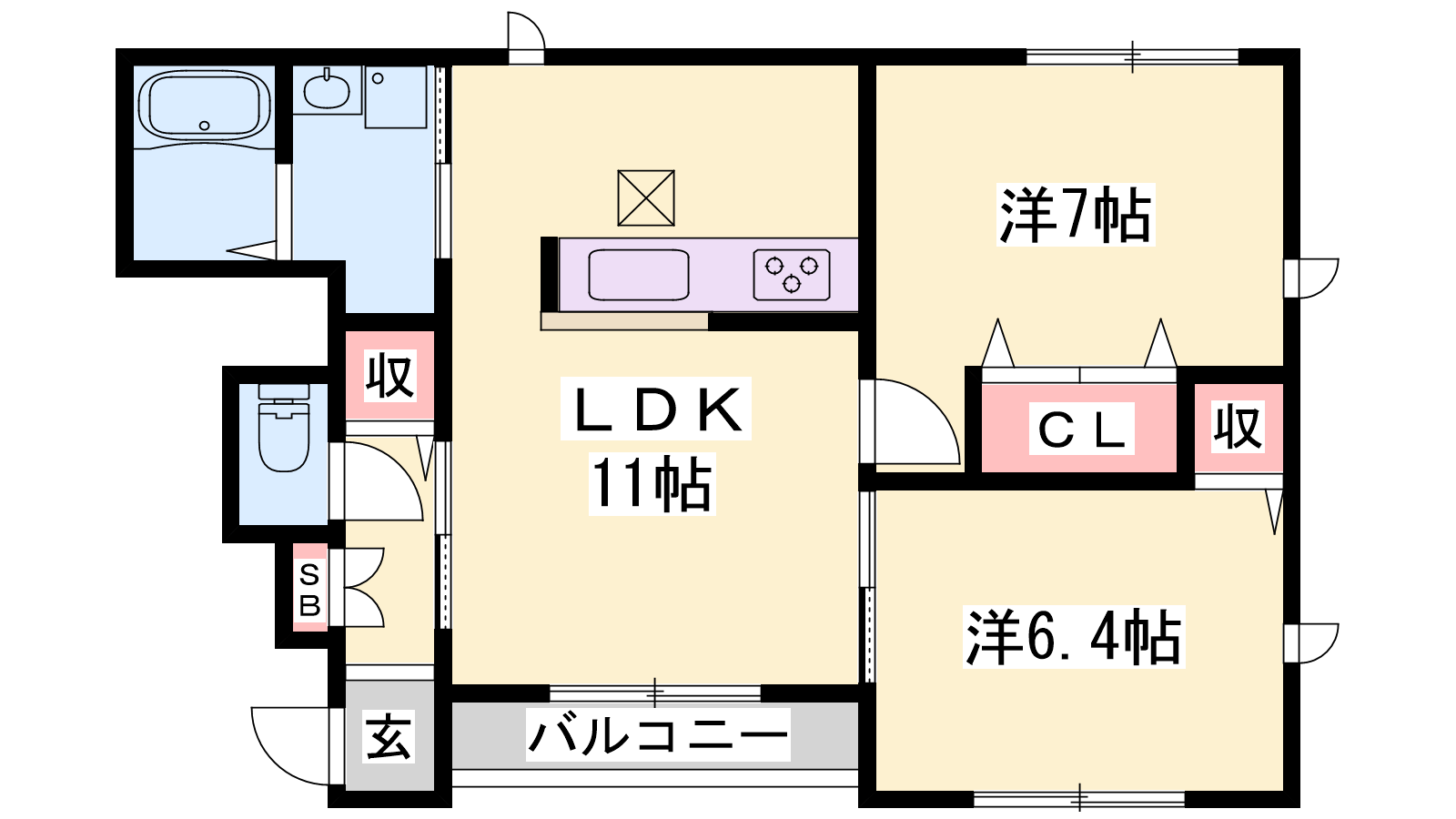 - LDK11帖、洋室7帖、洋室6.4帖
