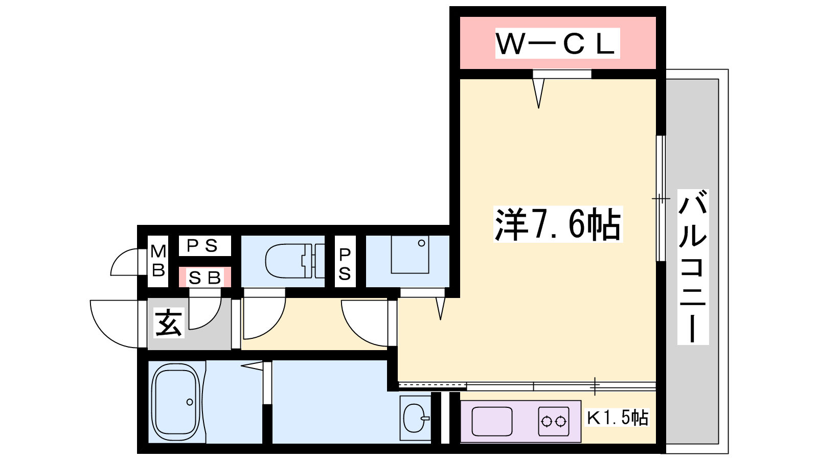 - K1.5帖、洋室7.6帖