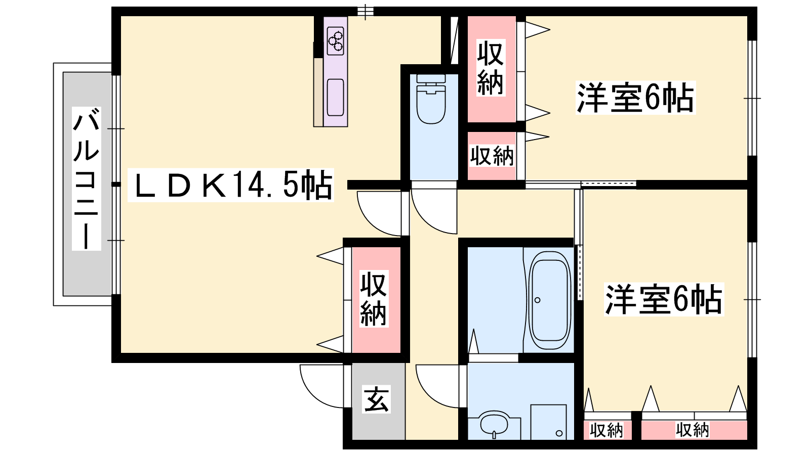 - LDK14.5帖、洋室6帖、洋室6帖