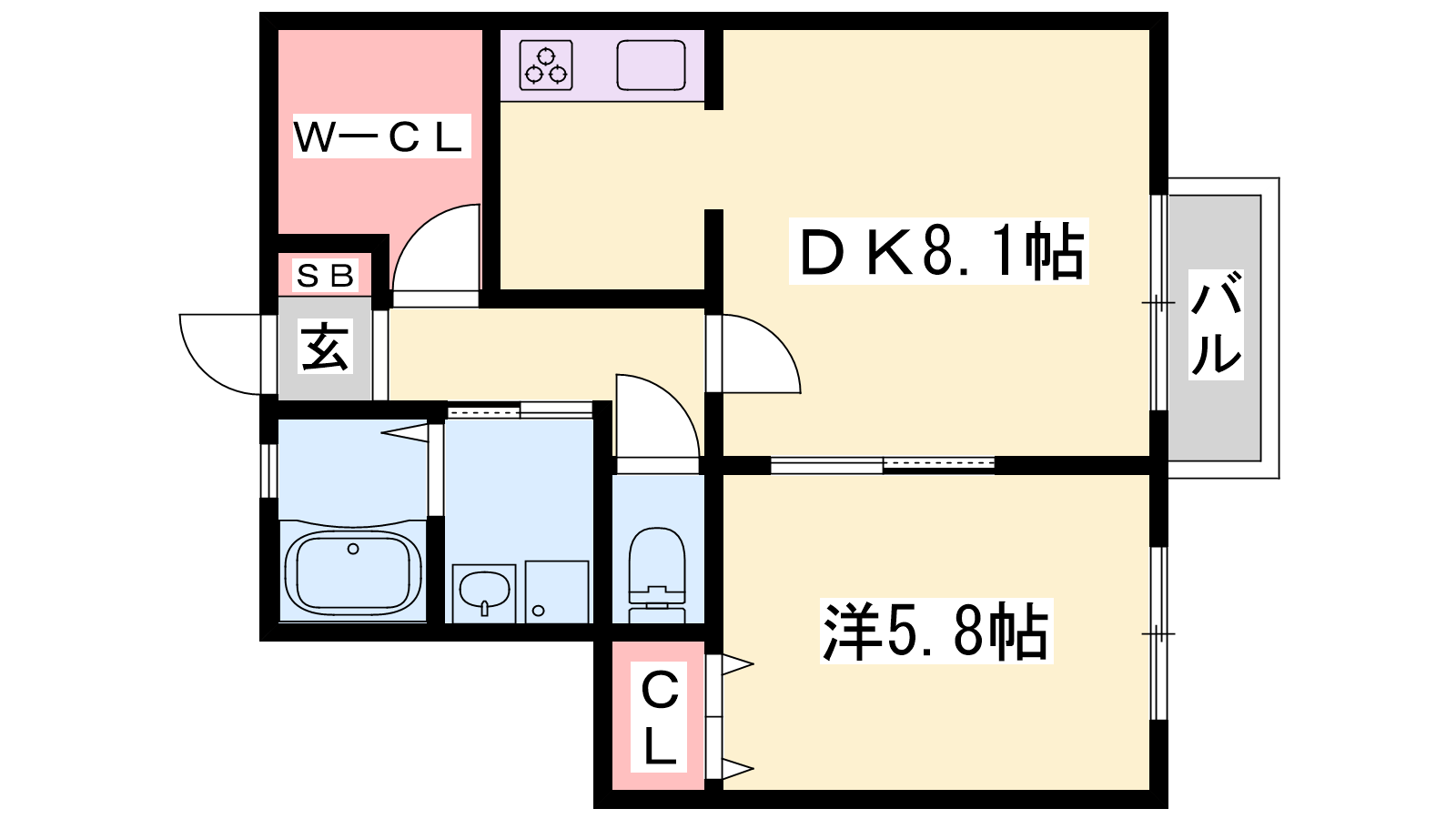 - LDK8.1帖、洋室5.8帖