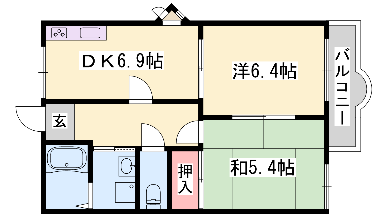 - DK6.9帖、洋室6.4帖、和室5.4帖