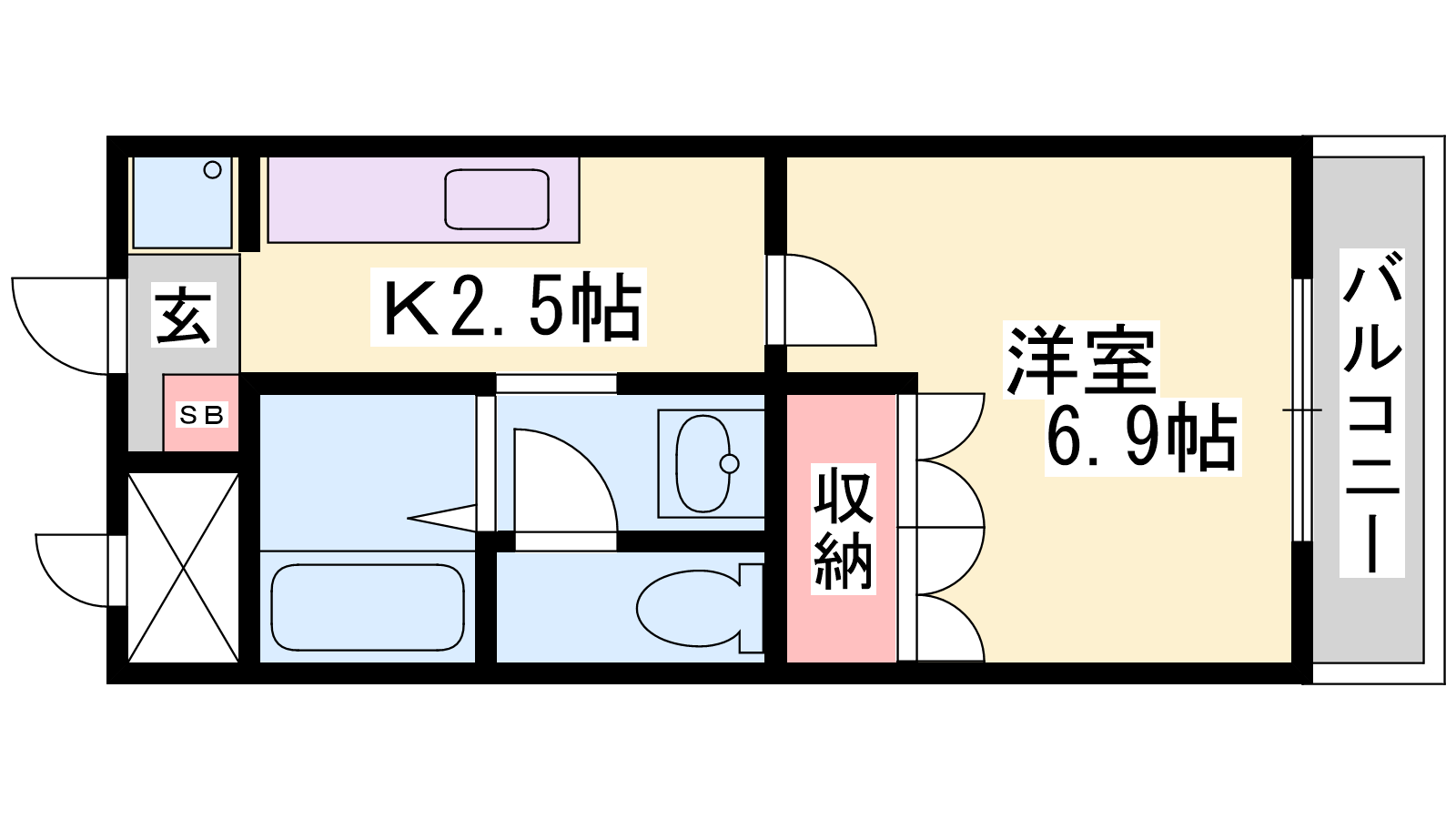 - K2.5帖、洋室6.9帖
