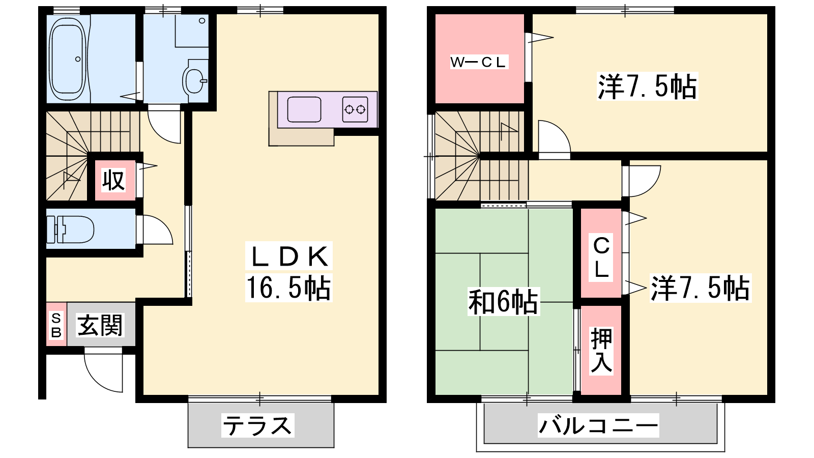 - LDK16.5帖、洋室7.5帖、和室6帖、洋室7.5帖