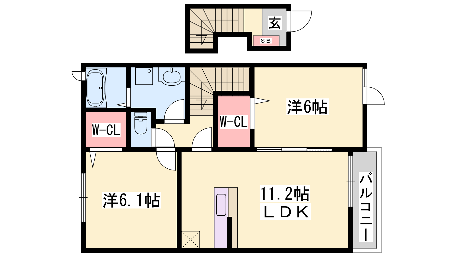 - LDK11.2帖、洋室6.1帖、洋室6帖
